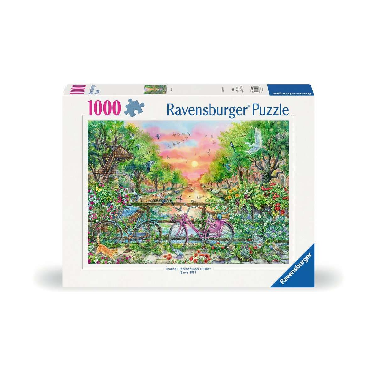 Ravensburger feiert den 50. Geburtstag des blauen Dreiecks und lädt zu einer Reise in die umfangreiche Produktwelt des Verlags ein. Zu diesem besonderen Anlass wurden einige Puzzle aus dem Ravensburger Puzzle Portfolio neu interpretiert. Für das Puzzle ?Verträumte Fahrräder in Amsterdam? hat unsere talentierte Künstlerin Ute Thönißen sich frisch ans Werk gemacht und die Fotografie ?Fahrräder in Amsterdam? auf eine fantastische Art liebevoll illustriert.Ravensburger feiert den 50. Geburtstag des blauen Dreiecks und lädt zu einer Reise in die umfangreiche Produktwelt des Verlags ein. Zu diesem besonderen Anlass wurden einige Puzzle aus dem Ravensburger Puzzle Portfolio neu interpretiert. Für das Puzzle ?Verträumte Fahrräder in Amsterdam? hat unsere talentierte Künstlerin Ute Thönißen sich frisch ans Werk gemacht und die Fotografie ?Fahrräder in Amsterdam? auf eine fantastische Art liebevoll illustriert. Wenn aus einer Fotografie eine Fantasy Illustration wird, dann kann man noch mehr Details in der Szenerie entdecken. Die vielen Vögelchen hört man beinahe Zwitschern, die Blumen blühen farbenfroh um die Wette und die Fahrräder bereiten sich auf die nächste Radtour durch das romantische Amsterdam vor..