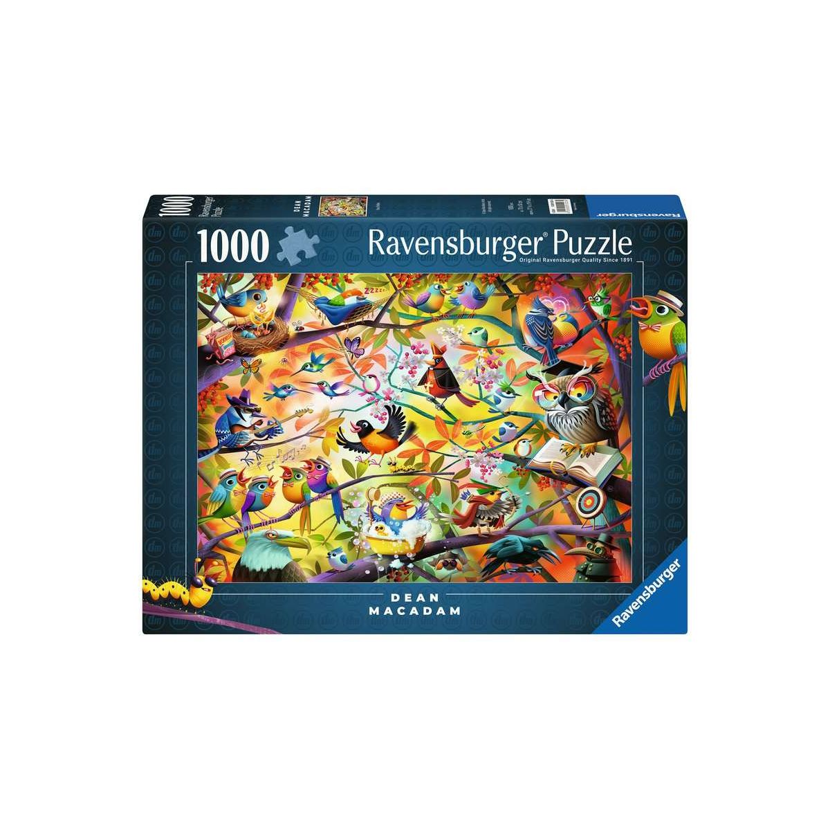 Schlagen Sie mit den Flügeln, wenn Sie bereit sind, mit dem Puzzle „Fleißige Vögelchen des Künstlers Dean MacAdam hoch zu fliegen!Der frühe Vogel fängt den Wurm (vor allem, wenn Mama ihn füttert) in unserem fröhlichen Puzzle „Fleißige Vögelchen von Dean MacAdam! Die Szenen erinnern an die verschiedenen Phasen des Lebens, von der Geburt bis zum Erwachsensein, und an die Reise, auf der man lernt, sich selbst zu harmonisieren und zu pflegen (wie das Puzzeln!). Sie werden sich mit einem Adlerauge auf jeden Abschnitt konzentrieren und Spaß haben, bis zum sehr befriedigenden Ende!Diese fantasievolle Szene wurde im Team-Finale des Schnellpuzzle-Wettbewerbs 2024 USA Jigsaw Nationals fertiggestellt! Dieses 1.000-teilige Puzzle kombiniert fesselnde Bilder mit sauber geschnittenen Teilen und Ravensburgers perfekter Verriegelung für ein höchst vergnügliches Puzzlespiel! Unsere Puzzles werden mit einer exklusiven, extradicken Rückseite und unserem hochwertigen Papier mit Leinenstruktur hergestellt, so dass das gedruckte Bild lebendig, scharf und blendfrei ist. Über den Künstler: Dean MacAdam ist ein Illustrator, der in Südkalifornien lebt. Sein selbst beschriebener Stil ist schrullig, hell und lustig! Dean ist relativ neu im Genre der Rätselkunst und hofft, die Rätselfreunde mit ausdrucksstarken Charakteren zu begeistern, sie mit humorvollen Details zu fesseln und ihnen schließlich zu ermöglichen, sich eine Geschichte hinter den Pinselstrichen vorzustellen..