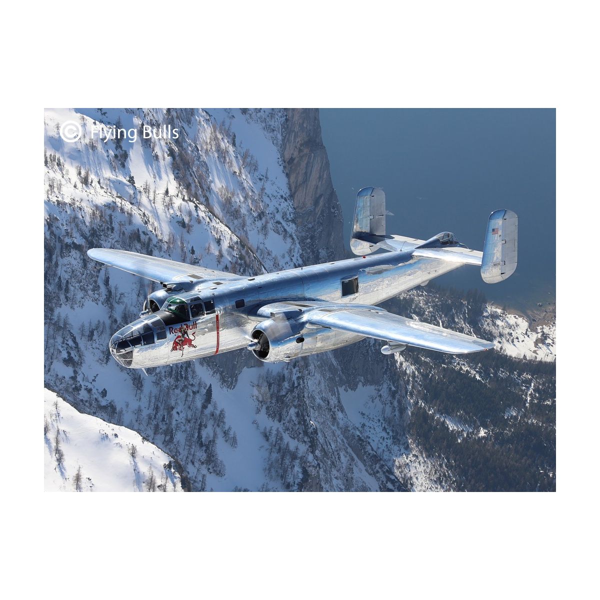 William Lendrum Billy Mitchell war zunächst Generalmajor der US-Armee, trieb aber nach seinem Rücktritt 1926 den Ausbau der amerikanischen Luftwaffe bis 1936 maßgeblich voran. Nach ihm wurde der zweimotorige, mittelschwere B-25J Bomber benannt. Die B-25 Bomber kamen ab 1940 im zweiten Weltkrieg zum Einsatz und wurden von mehreren Fraktionen genutzt. Der Typ J war dabei mit 4.318 produzierten Maschinen der am weitesten verbreitete Bomber der Reihe. • Authentische Oberflächendetails • Detailliertes Cockpit mit Armaturenbrett • aufwendige Flying Bulls Dekoration Neben Basisfarben sind auch Kleber und Pinsel enthalten.
