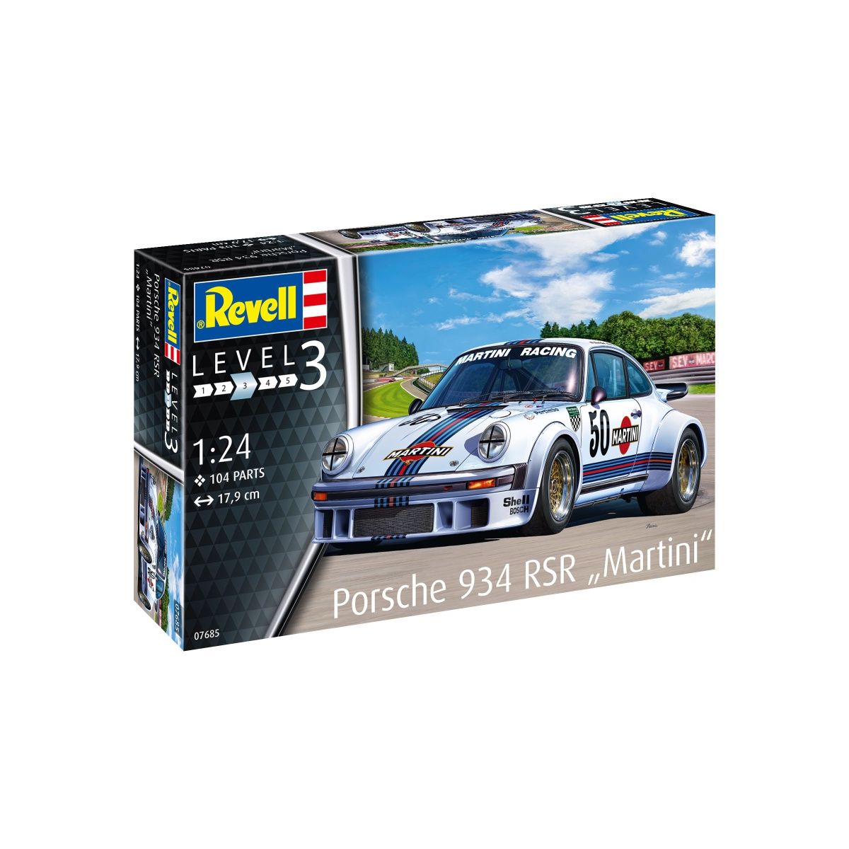 Einfach zu bauender Modellbausatz des erfolgreichen Rennwagens der Gruppe 4 der GT-Klasse, der ab 1976 zum Einsatz kam. Maßstab 1/24. 104 Teile. 17,9 cm Länge. Geeignet ab 10 Jahren. Modelldetails: - Originalgetreue Karosserie - Mehrteiliger Motor - Separate, bewegliche Motorhaube - Mehrteiliger Überrollbügel - Drehbare Räder - Abziehbild für das Martini-Dekor Lizenz: Porsche, the Porsche shield and the distinctive design of Porsche cars are trademarks and trade dress of Porsche AG. Permission granted. Maßstab: 1:24 Länge: 17,9 cm Breite: 8,4 cm Höhe: 5,7 cm Einzelteile: 104 Alter: ab 10 Jahren Level 3 Um eine originalgetreue Nachbildung zu erhalten, muss der Modellbausatz geklebt und bemalt werden. Die bebilderte Bauanleitung zeigt dabei Schritt für Schritt, welche Teile in welcher Reihenfolge zusammengebaut werden sollten. Der Bauplan enthält darüber hinaus einen Bemalungsvorschlag für die abgebildete Version. Kleber und Farben sind separat erhältlich. Für eine schöne Nachbildung werden die die folgenden Farben benötigt 04 09 78 90 91 94 99 302 730 731. Für eine originalgetreue Nachbildung bis ins kleinste Detail, werden darüber hinaus die folgenden Revell-Farbnummern benötigt: 07 314 330 371 378 382..