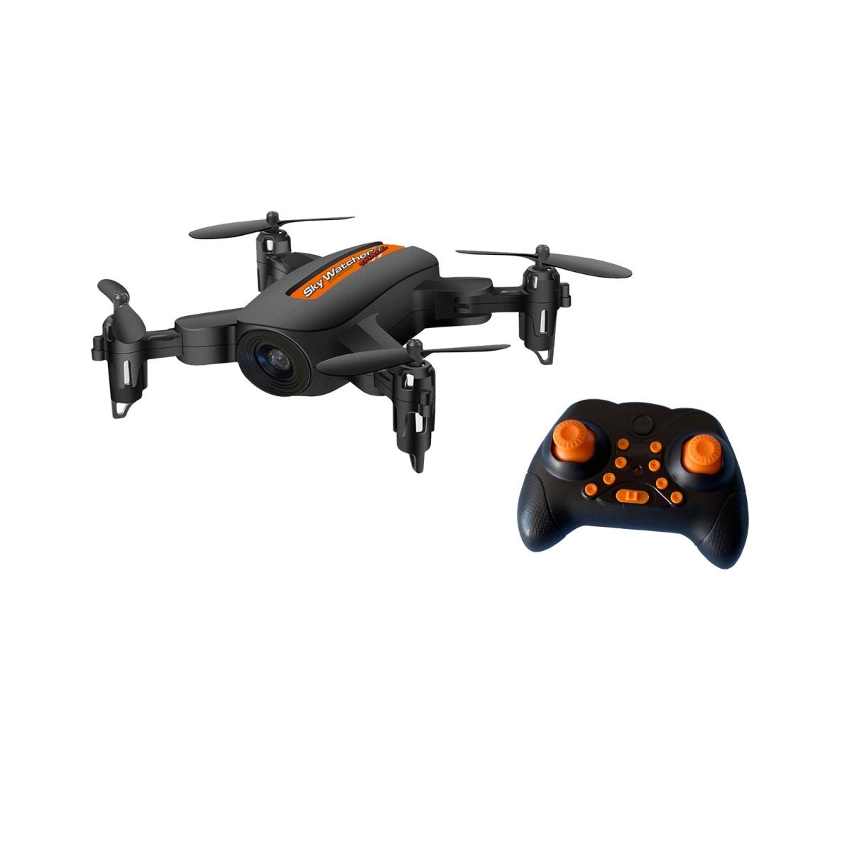 Der neue SkyWatcher SMALL ist eine äfaltbare“ Drohne mit Start-Landeautomatik sowie einer Höhenstabilisierung (hält die vorgegebene Flughöhe selbständig). Durch die unterstützenden Systeme des Modells wird das Fliegen fast zum äKinderspiel“! Die Arme des Modells sind einklappbar, somit kann das Modell platzsparend untergebracht werden. Das Modell besitzt einen leistungsstarken LiPo Akku und hat eine Flugzeit von bis zu 8 Minuten. Aufgeladen wird das Modell mit einem im Lieferumfang befindlichen USB-Ladekabel. Die Agilität des Modells ist in 3 Stufen einstellbar und somit für Anfänger bis Profis In- und Outdoor (bei Windstille) geeignet. Über eine Flip-Taste am Controller können Flips und Überschläge per Knopfdruck ausgeführt werden. Durch eine LED-Beleuchtung lässt sich das Modell auch bei Dunkelheit gut fliegen. Steigen Sie ein in wilde Büro-Races und Wohnzimmer-Battles! Technische Daten: - Flugzeit: 6-8 Minuten - Antrieb: 4x Brushed - Länge: 75 - 145 mm - Breite: 65 - 140 mm - Höhe: 35 mm Lieferumfang: - Quadrocopter - 2,4 GHz Fernsteuerung - 3,7 Volt – 500mAh LiPo Akku - USB Ladekabel - Rotorschützer/ Ersatzrotorblätter - Anleitung.