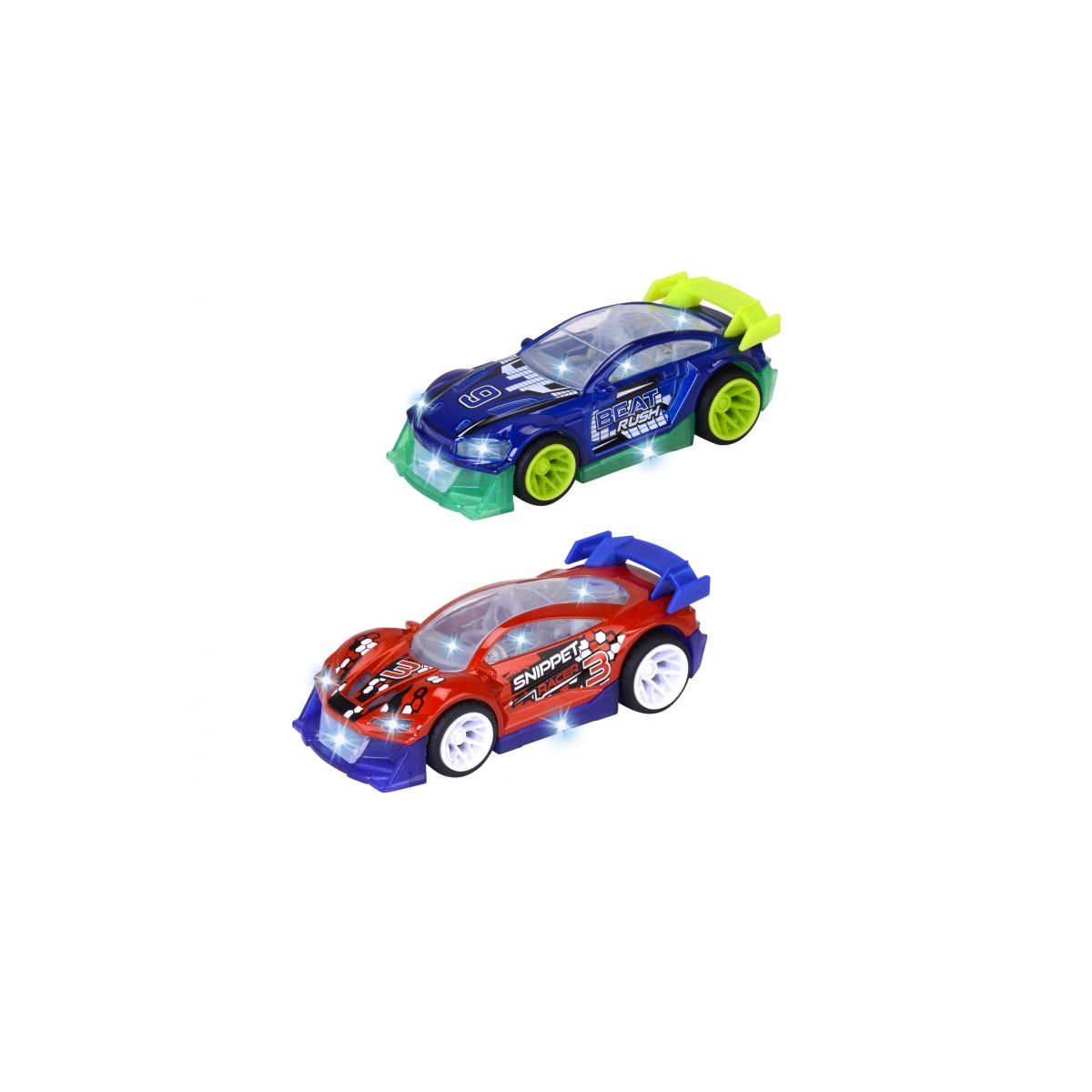Dickie Toys - Spielzeugauto Midnight Racer (14cm) - STREETS N BEATZ Auto mit Metallkarosserie, Rückzugsmotor, Licht & Musik, für Kinder ab 3 Jahre (2 Modelle, zufällige Auswahl) • Der Star bei Tag & Nacht. Leuchtet im Dunkeln: Die spektakulären Licht- und Soundeffekte machen das außergewöhnliche STREETS N BEATZ Spielzeug-Fahrzeug schnell zur Hauptattraktion im Kinderzimmer. • Zurückziehen & losdüsen - Dank kindgerechtem Rückziehmotor und robuster Metallkarosserie mit knalligen Farben begeistert das 14cm lange Metallauto kleine Auto-Fans ab 3 Jahren. • Auto in 2 Varianten - ACHTUNG: Du erhältst EINES von zwei möglichen Spielzeugautos aus Metall. Das Auto wird per Zufall im Lager ausgewählt, eine Vorauswahl der Autos nach Modell ist nicht möglich. • Modellauto mit Spezialeffekten - Bereits ausgestattet mit den benötigten Batterien für Licht, Musik & Sound steht der großen Show nichts mehr im Wege: Da leuchtet das Auto … und die Kinderaugen! • Dickie Toys - Die Fahrzeug-Marke für Kinder! Kleine Racer, große Renner: Wir haben immer ein Ziel vor Augen: Kindern ein Lächeln ins Gesicht zu zaubern. Einfach auspacken und los geht der Spaß!.