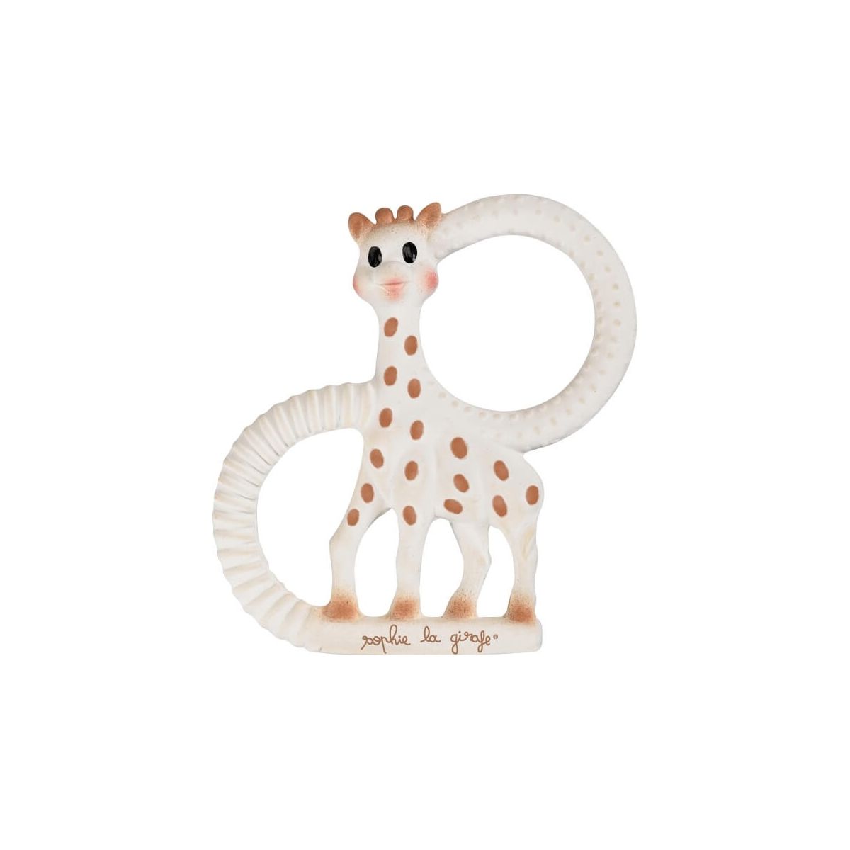 Beißring SO PURE Sophie la girafe - Version weich. Dieser Beißring aus 100% Naturkautschuk hilft dem Baby, den Zahnungsschmerz zu lindern. Die Ohren, Hörner, Füße und Ringe bieten dem Baby viele Möglichkeiten, darauf herumzukauen. Beide Ringe haben unterschiedliche Strukturen - Rillen und Noppen - und das Baby wählt die ihm angenehmste Fläche zum Beißen. Der Beißring Sophie la girafe ist leicht und lässt sich gut an den Ringen greifen und festhalten. Ab Geburt. Größe: ca. 11,5 x 9 cm. Reinigung: Keine Hochtemperatursterilisierung. Nicht in der Spülmaschine reinigen. Nur mit einem feuchten Tuch abwischen. Die Details und Farben des Inhalts können unterschiedlich ausfallen. Die Verpackung bitte aufbewahren. Sie enthält wichtige Informationen. Warnhinweise: ACHTUNG! Alle Verpackungen und Befestigungen vor Gebrauch entfernen. Nicht sterilisieren. Wir empfehlen Ihnen dieses Spielzeug oberflächlich mit Seifenwasser und einem feuchten Tuch zu reinigen. ACHTUNG! Das Produkt vor jedem Gebrauch sorgfältig untersuchen, insbesondere wenn das Kind bereits Zähne hat. in alle Richtungen an dem Produkt ziehen. Entsorgen Sie es, sobald erste Anzeichen von Beschädigung oder Abnutzung auftauchen. Keiner direkten Sonneneinstrahlung aussetzen und von Wärmequellen fernhalten. So wie alle Babyartikel, sollte dieses Spielzeug nur unter Aufsicht eines Erwachsenen verwendet werden..