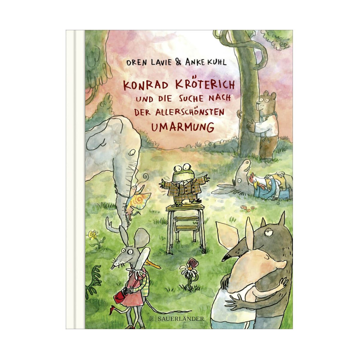 Eine Umarmung tut allen gut. Konrad Kröterich von Keks lebte allein. Er liebte es, sich mit seinem Spiegelbild zu unterhalten und staunte, was für ein amüsanter Gesprächspartner er doch war. Eines Tages wachte er auf und rief zu sich selbst. »Ich habe von der schönsten Umarmung geträumt . Sofort machte er sich auf die Suche. Die Giraffe Georgette hatte einen zu langen Hals, er rutschte bei der Umarmung mit ihr immer wieder von oben nach unten. Mit dem Goldfisch Geri war es Konrad zu nass. Er versuchte es mit anderen Tieren. Doch manche Umarmung war zu weich, zu hart, zu eng, zu wild. Und manch einer konnte er kaum entkommen. Am Ende des Tages war Konrad entmutigt. Mit einer Anzeige in der Zeitung rief er schließlich zu einer spaktakulären Umarmungsaktion im Stadtpark auf. Würde er hier die vollkommene Umarmung finden? Konrads Umarmungsversuche mit den verschiedensten Bewerbern war irgendwie ansteckend. Plötzlich begannen alle im Park Anwesenden einander zu umarmen. Eltern ihre Kinder, Freunde ihre Freunde, ja sogar Fremde nahmen sich in die Arme. Gerade noch rechtzeitig erkennt Konrad Kröterich, dass die perfekte Umarmung auch etwas mit Loslassen zu tun hat. Eine feinsinnige Geschichte des international bekannten Musikers Oren Lavi kongenial von der Künstlerin Anke Kuhl illustriert..