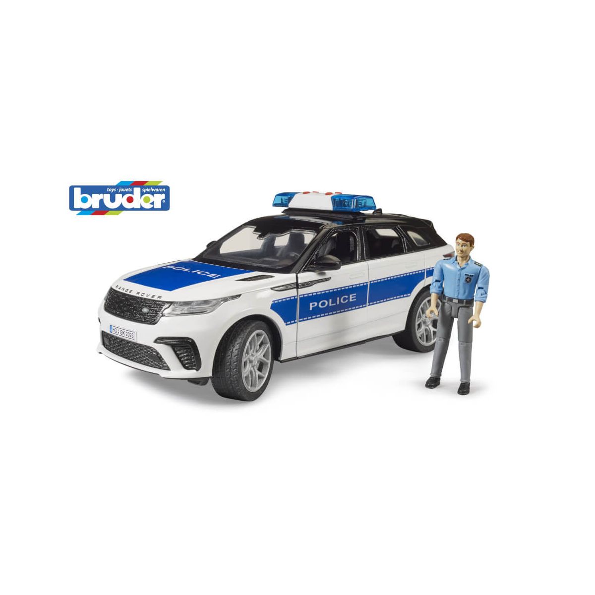 Der Range Rover Velar übernimmt eine führende Rolle in den Bereichen Design, Effizienz und Performance. Beim Velar treffen Eleganz und Komfort auf ein immer noch außergewöhnlich geländegängiges Fahrzeug. Mit neuen Hybrid-Antrieben, mit bis zu 400 PS und ausgereifter Allradtechnik hat dieser Geländewagen eine auffallend große Einsatz-Bandbreite. Um auch abseits der Stadt, im schwer zugänglichen Gelände aktiv sein zu können, kommt zu den BRUDER Einsatzkräften der Range Rover Velar in Polizeiausführung hinzu. Das Spielzeug ist, wie sein großes Vorbild, mit der 4-türigen Kabine ausgestattet. Alle Türen sind zum Öffnen und bieten 4 bworld Figuren Platz. Für Fahrkomfort und Geländegängigkeit ist dieses Modell im Maßstab 1:16 mit gefederten Achsen ausgestattet, wobei die Vorderachse mit der enthaltenen Lenkradverlängerung lenkbar ist. Für den Transport im Spielbetrieb kann die Heckklappe geöffnet werden, außerdem ist ein Light + Sound Modul mit 4 verschiedenen Funktionen (Motorengeräusch, Yelp-Signal, Polizei-Sirene und Feuerwehr-Sirene) installiert. Der enthaltene Polizist ist voll beweglich..