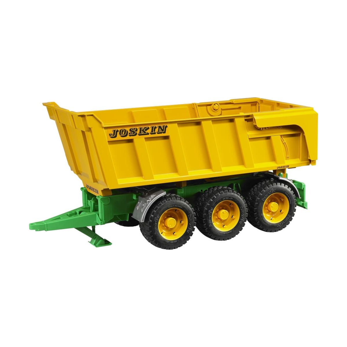 Einer der größten und schwergewichtigsten Wannenkippanhänger auf dem Markt ist der 3-achsige Kipper des belgischen Herstellers Joskin. Konzipiert für schwere Lasten und Transporte unter extremen Bedingungen, wie bei Arbeiten im Tiefbau oder bei landwirtschaftlichen Nutzungen in schwierigem Gelände fassen diese Ungetüme im Original bis zu 24 Tonnen Nutzlast bzw. bis zu 29 Kubikmeter Ladevolumen. Das eindrucksvolle BRUDER Modell wurde in Analogie zur Original-Baureihe Trans-SPACE entwickelt und verfügt entsprechend unserem Slogan...just like the real thing... über eine hochklappbare und arretierbare Kippmulde mit automatischer Heckklappenöffnung. Das 3-achsige Fahrwerk gleicht alle Geländeunebenheiten aus. Ideal paßt dieser Kippanhänger zu den Top Profi-Traktoren der Neuen Generation, die seit Herbst 2004 erhältlich sind und bereits viele begeisterte Kunden gefunden haben. Aber auch die Traktoren der Profi-Serie sowie unsere Unimogs ( mittels Kupplungsadapter ) eignen sich gut als Zugfahrzeuge.