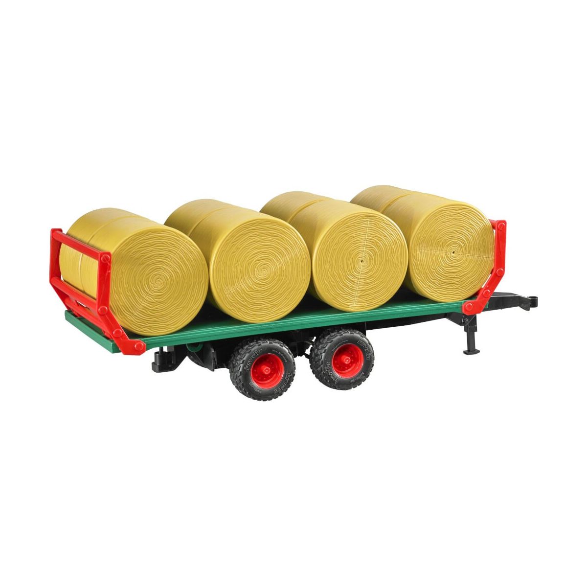 Die im Herbst vielfach auf den Feldern zu sehenden Silage- und Strohrundballen müssen rationell vom Bauern vom Feld in den Stall oder in die Scheune gebracht werden. Zu diesem Transport dient normalerweise ein spezieller Transportanhänger, den es ab jetzt auch in unserem Sortiment gibt. Unser Modell zeichnet sich durch klappbare Begrenzungs-Rungen aus und wird mit 8 Rundballen ausgeliefert. Zur Beladung des Anhängers können alle unsere Traktoren mit Frontlader und Gabelaufsatz benützt werden, wodurch sich ein funktionelles Spielset ergibt. Hervorragend kombinierbar zu dieser Spielidee sind auch unsere Rundballen- und Quaderballenpresse ( Art.-Nr. 02121, 02015 und 02017) sowie der Rundballenwickler (Art.-Nr.02122).