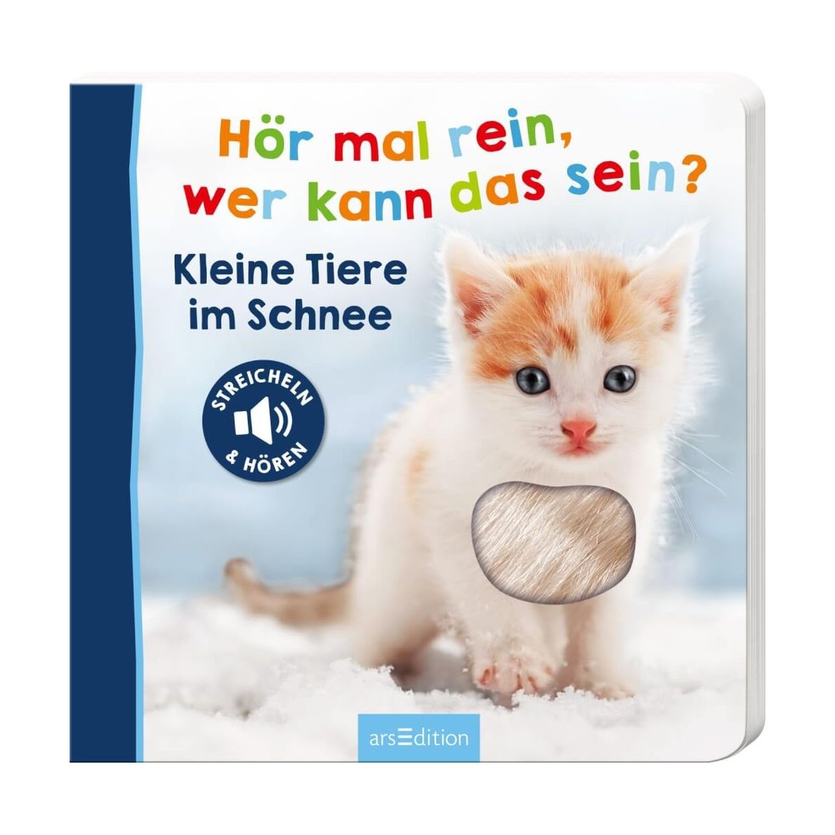 Wie macht das kleine Kätzchen? Das Kätzchen miaut, der Hund bellt und das Pony wiehert. Doch wie klingen der Biber und das Rotkehlchen? Hier kannst du es entdecken. Einfach über das kuschelweiche Fell der Tiere streicheln und schon werden die Schneeszenen lebendig. Das Fühlbuch mit vielen hochwertigen Fotos und Soundmodulen begeistert schon die Kleinsten und macht das gemeinsame Vorlesen zum interaktiven Erlebnis für alle Sinne. Fühlen, hören und staunen. Auf jeder Doppelseite wird ein Tier im Schnee mit vielen anschaulichen Fotos und einem kurzen Sachtext vorgestellt. Das weiche Fell lädt zum Fühlen ein und beim Darüberstreicheln wird das passende Tiergeräusch ausgelöst. Das ist nicht nur spannend, sondern fördert auch die Hand-Auge-Koordination, die Lautbildung und das Sprechen. Das Fühlbuch mit Sound eignet sich für Kinder ab 18 Monaten. Hoher Wiedererkennungsfaktor: Die hochwertigen Tierfotos sorgen für ein schnelles Erkennen der Tiere. Mit Soundmodulen: Die Tiergeräusche lassen sich kinderleicht beim Streicheln des Fells auslösen selbst aktiv werden: Das streichelweiche Fell fühlen, das eindeutige Tiergeräusch hören und nachahmen Alle Sinne kommen zum Einsatz: Das Babybuch fördert die Motorik, die Lautbildung und animiert zum Spracherwerb Für empfindliche Kleinkinderohren: Sound wird in angenehmer Lautstärke wiedergegeben Ton abschaltbar: Dank des praktischen An- und Ausschalters auf der Buchrückseite lassen sich die Geräusche ein- und ausschalten Batterien auswechselbar: Die Bücher enthalten handelsübliche Knopfzellenbatterien vom Typ LR 1130 mit je 1,5 V, die sich problemlos auswechseln lassen Geprüfte Qualität: Das Buch unterliegt strengen Sicherheitsanforderungen und regelmäßigen Qualitätskontrollen nach europäischer Spielzeugsicherheitsrichtlinie.