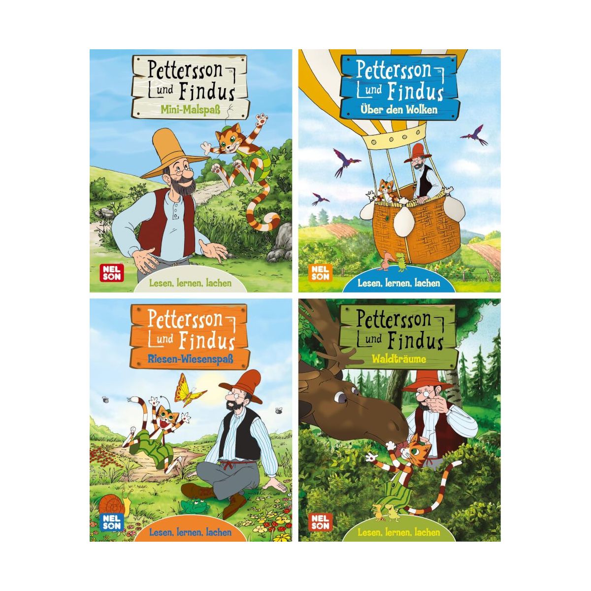 Das schwedische Kultduo Pettersson und Findus im Mini-Buch-Format! Der Mann und sein Kater erleben stets neue Abenteuer und begeistern Jung und Alt mit ihren zahllosen tollen Einfällen. In jedem Mini-Buch finden sich kurze Texte zum Lesenlernen, Basteltipps, Spielanleitungen und allerlei Unglaubliches und Wissenswertes. Für Zuhause und unterwegs! 1. Über den Wolken 2. Waldträume 3. Mini-Malspaß 4. Riesen WiesenspaßEine Bestellung unter dieser ISBN beinhaltet eines der abgebildeten Minibücher. Das Set mit allen 4 Minibüchern ist unter der ISBN 978-3-8451-2281-6 erhältlich..
