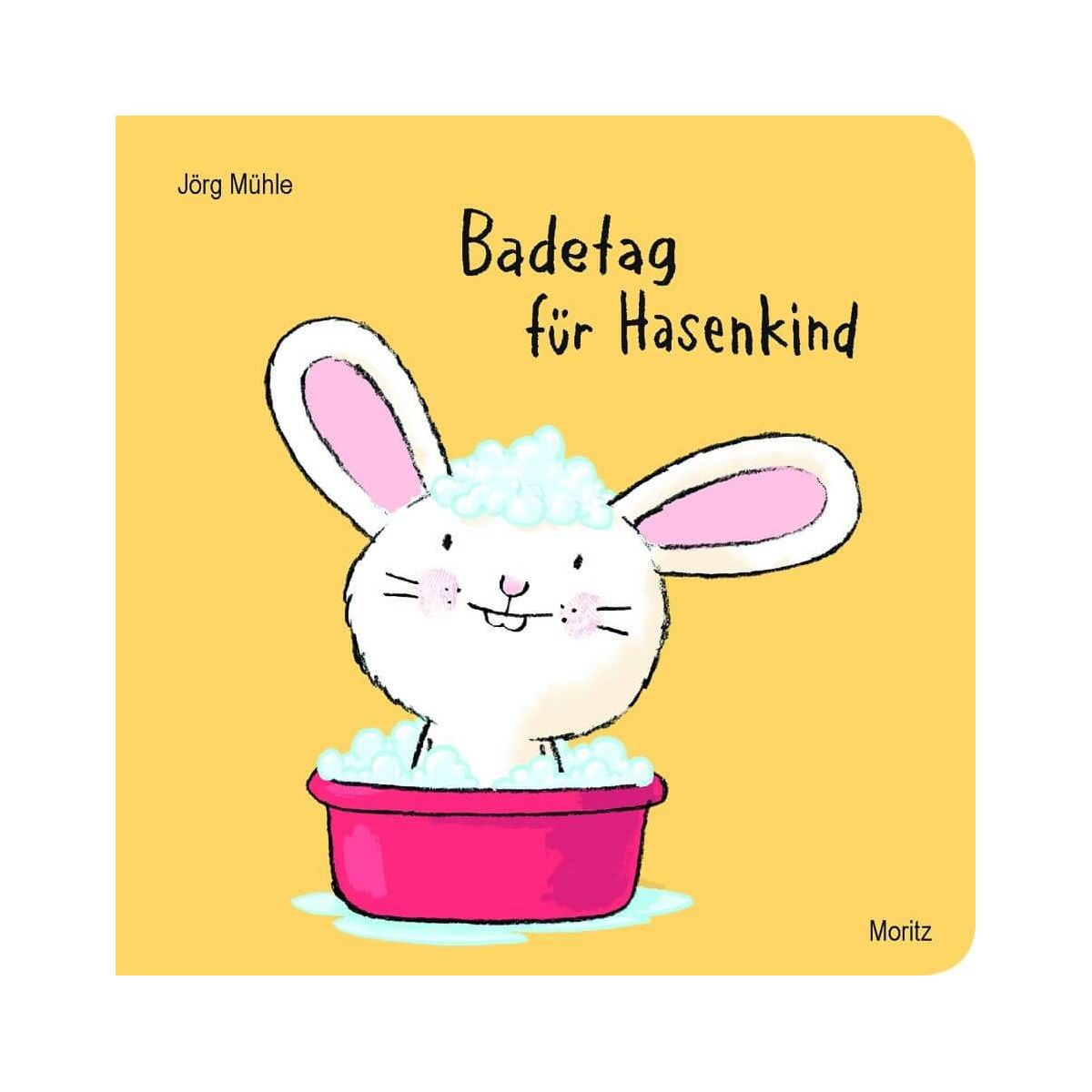 Badetag für Hasenkind: Ruf doch mal nach ihm. Welches Kind lässt sich schon gern die Haare waschen? Auch Hasenkind muss dazu überredet werden, aber dann ist alles gar nicht so schlimm. Als der Föhn kaputt ist, darf jeder Betrachter pusten. Feste! Jetzt noch eincremen und dann ist der Badetag geschafft: Hasenkind ist sauber. Picobello! Nach Nur noch kurz die Ohren kraulen? hat sich Jörg Mühle ein weiteres Pappbilderbuch ausgedacht, das Kinder zum Brauseaufdrehen, Augenzuhalten und Naseabtupfen einlädt und allen Beteiligten große Freude macht! Wieder verzaubert es alle, die es sehen: Kinder, Eltern, Hasen..