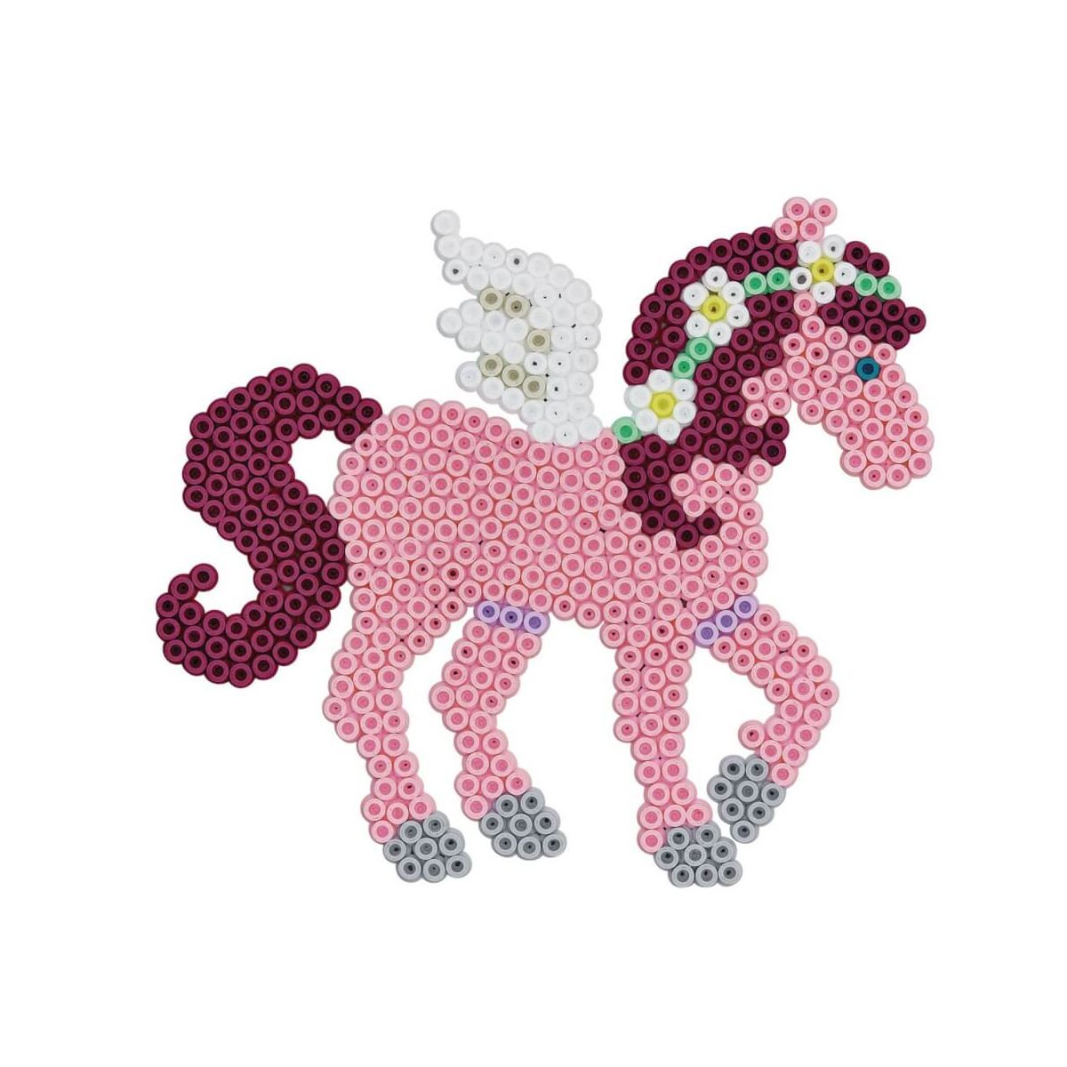 Die beliebteste Größe im HAMA-Programm sind die HAMA MIDI-Perlen mit einem Durchmesser von 5 mm. Wir empfehlen MIDI-Perlen für Kinder ab 5 Jahren, da in diesem Alter die Motorik entsprechend trainiert ist. Kinder und Erwachsene aller Altersgruppen können mit diesen Plastikperlen viel Spaß haben, egal ob man die Perlen bügelt oder fädelt. Die Perlen sind aus PE hergestellt und für Kinder ungefährlich, falls sie versehentlich verschluckt werden. Bügelperlen Geschenkbox Traumpferde beinhaltet ca. 2.000 Perlen sowie eine passende Stiftplatte, Anleitung und Bügelpapier.