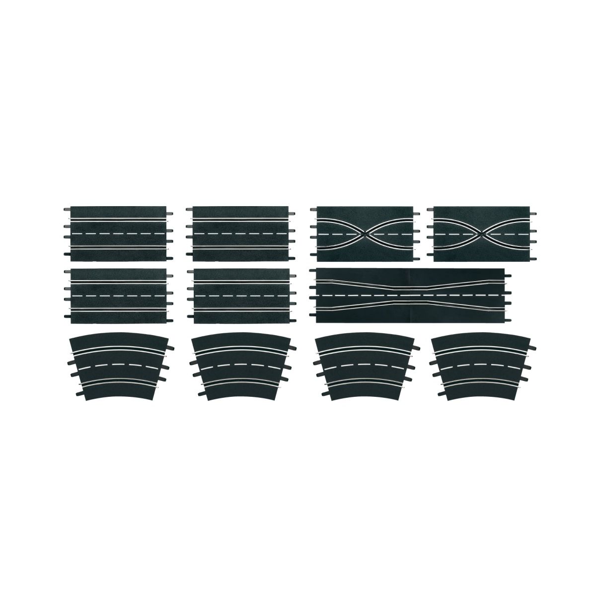 Vielseitiges Carrera Ausbauset für Rennbahnen im Maßstab 1:24DIGITAL 124, DIGITAL 132, Carrera EVO LUTION Zum Ausbauen und Erweitern Deiner BahnPackungsinhalt: 4 Stück Standardgeraden , 2 Stück Spurwechselstücke, 2 Stück Engstellen, 4 Stück Kurven2 / 30 Grad, Bahnstückverriegelungen Immer größer, immer rasanter - dieses Ausbauset macht es möglich! Im Laufe der Zeit wird sich a uch in Dir das Vorhaben verankern, Deine Carrera Bahn immer weiter zu einer vielseitigen und aufrege nden Rennstrecke werden zu lassen. Doch wie stellst Du das am besten an? Als erster Schritt empfiehl t sich der Ausbau mit weiteren Schienenteilen. Mit diesen kannst Du Deine Bahn neu konstruieren und durch weitere Elemente vergrößern. In diesem Ausbauset findest Du viele verschiedene Schienen, die D ich bei Deinem Projekt ?rasante Carrera Bahn unterstützen. vier Standardgeraden, zwei Spurwechselst ücke, zwei Engstellenschienen und vier Kurvenstücke mit 2/30° sowie die passenden Bahnstückverriegel ungen kommen mit diesem Set zu Dir nach Hause. Alle enthaltenen Schienenteile sind im Maßstab 1:24 u nd können daher für die Carrera DIGITAL 124, die Carrera DIGITAL 132 und die Carrera EVOLUTION einge setzt werden..