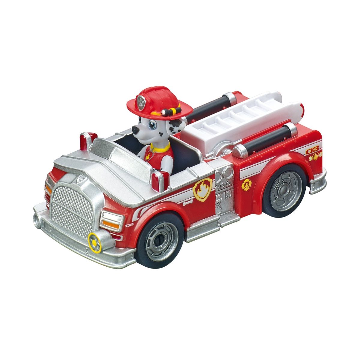 PAW Patrol MarshallCarrera FIRSTFeuerwehraction pur Ab 3 JahrenMaßstab 1:50&nbs pMarshall von PAW Patrol: Der tapfere Feuerwehrhund! Begleite Marshall von PAW Patrol auf spannenden Rettungsmissionen! Mit seinem roten Feuerwehrauto ist der Dalmatiner immer bereit, d en Tag zu retten und Brände zu löschen. Jetzt kannst du gemeinsam mit dem mutigen Feuerweh rhund über die Carrera FIRST Rennbahn flitzen.  Der Feuerwehrheld im Einsatz  Marshall ist bekannt für seinen Mut und seine Hilfsbereitschaft.Zeige am Handregler, dass Marshall nicht nur ein Meister im Löschen von Bränden, sondern auch auf der Rennstrecke un schlagbar ist. Ob allein oder mit deinen Freunden zusammen - mit Marshall auf der Bahn ist immer Act ion angesagt. Sei bereit für eine Menge heldenhafter Einsätze und unvergesslichen Spielspa ß! Jede Menge Fahrspaß dank detaillgetreuer EinsatzfahrzeugeDank originaler P AW Patrol Lizenz, erwecken wir Marshall auf der Rennstrecke zum Leben. Im Maßstab 1:50 bringt er die volle Action in dein Kinderzimmer. Der Einsatzwagen ist mit viel Liebe zum Detail hergestellt worden, sodass es dem Original zum Verwechseln ähnlichsieht.Die kräftigen Far ben machen das Feuerwehrauto zu einem echten Blickfang auf der Rennstrecke. Das Material ist so robu st, dass selbst Zusammenstöße ohne weiteres überstanden werden. Wenn du noch mehr ru nd um deine Helden der PAW Patrol erfahren möchtest, dann schaue dich in unserer PAW Patrol The menwelt um!.