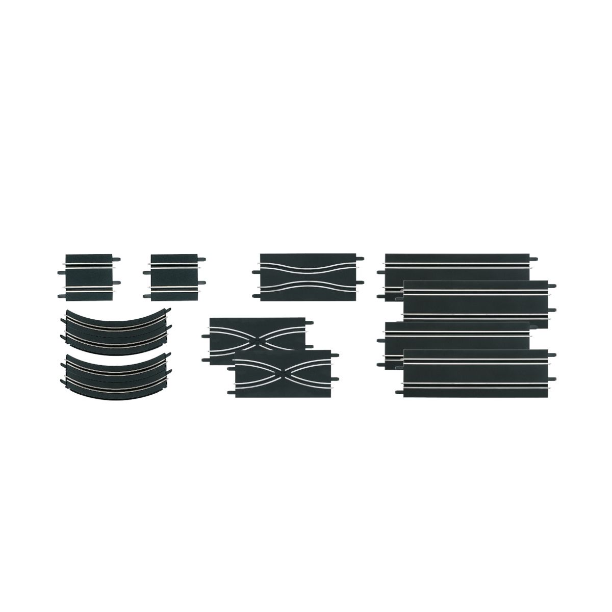 Spannendes Ausbauset für digitale Carrera Bahnen im Maßstab 1:43DIGITAL 143, GO!!! Plus & GO!!! Zum Ausbauen und Erweitern Deiner Rennbahn Packungsinhalt: 4 Geraden 342 mm, 2 Geraden 114 mm, 2 Spurwechsel, 1 Engstelle, 2 Fly Over inkl. Stützen Das perfekte Ausbauset für rasante Ren nenDu möchtest Deine Carrera DIGITAL 143 aufrüsten und suchst noch nach den passenden Elementen, um für mehr Action auf der Rennstrecke zu sorgen? Dieses Ausbauset ist genau das Richtige für Dein Vorhaben. Neben vier Geraden mit einer Länge von 342 mm und zwei Geraden mit 114 mm Länge erhältst D u mit diesem Carrera Set auch noch zwei Spurwechsel und eine Engstelle. Das besondere Highlight sind die beiden Fly Over Abschnitte, die zusammen mit Stützen ebenfalls darauf warten, Deine Carrera Bah n mit spannenden Fahrerlebnissen auszustatten. Mit den Fly Over Einheiten ist es für Dich ab sofort eine Leichtigkeit, Dein Slotcar nach einem Looping durch die nächste Kurve zu manövrieren. Der Speed wird dadurch etwas abgebremst und das Fahrzeug bleibt in der Spur. Sei kreativ und gestalte mit dem Ausbauset immer wieder neue Strecken, die Dich und Deine Gegner herausfordern..