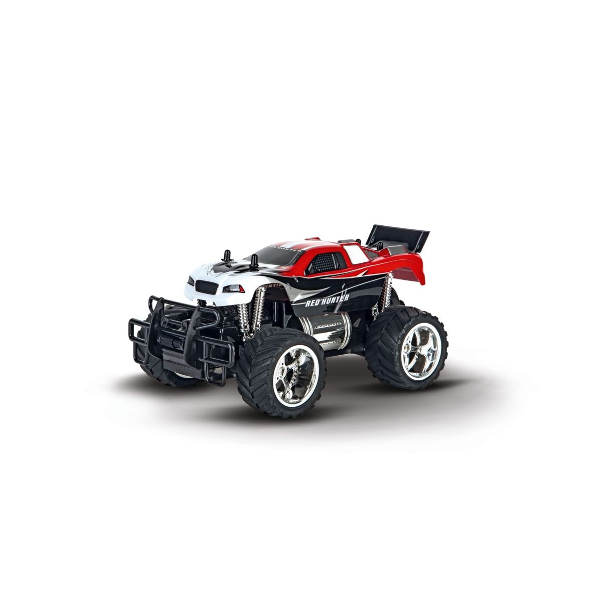 Carrera Red Hunter Carrera RC Offroad Länge: 25,3 cm Ab 6 Jahren~FRC Action für drinnen und draußen~fDer aufgemotzte Red Hunter X mit extra großen Luftreifen bringt Action ins Kinderzimmer u nd in den Garten. Mit dem 25 cm langen Offroader und seiner Full Function-Steuerung kannst du präzis e und sicher dein Fahrzeug ins Ziel lenken. ~FReady to Run - Auspacken und direkt losstarten ~fDas Fahrzeug wird Ready-to-Run, also mit 6x AA (LR06) Batterien geliefert. Damit kannst du sofor t die Reifen quietschen lassen und die Rennstrecke unsicher machen. Mit der 2,4 GHZ Technologie kann st du, ohne auf die Frequenz achten zu müssen bis zu 16 Fahrzeuge gleichzeitig auf einer Bahn fahren lassen. Also ran an den Controller und gib richtig Gas..
