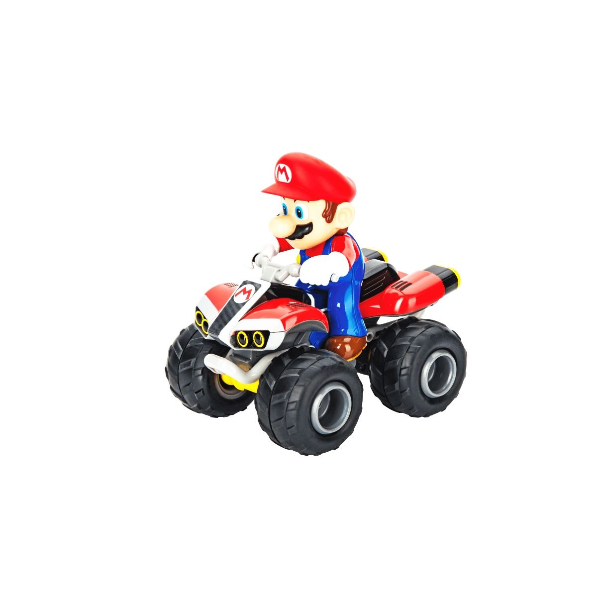 Carrera RC Mario QuadCarrera RC QuadMit Mario auf der Pisteca. 19,5 cm langNEU mt 3,2 V 700 mAh LiFePo4 Akkuab 6 JahrenLass dich nicht vom blauen Panzer erwischen!Mario startet im Ge lände durch! Mit seinem rasanten Carrera RC Quad im Maßstab 1:20 machen du und der Kult-Videospielhe ld die Offroad-Pisten unsicher. Hier erlebst du echte Mario Kart? Rennen abseits des Bildschirms und startest mit deinem Lieblingsfahrer im Garten, im Park oder im Sandkasten durch. Auch für Sammler i st Mario ein echtes Highlight. Heiße Rennen mit MarioRiesige Luftreifen bringen den kleinen Helden sicher über Stock und Stein. Dank der original Nintendo-Lizenz sieht Mario genauso wie sein d igitales Vorbild aus. Bereits Rennfahrer ab 6 Jahren können dank der einsteigerfreundlichen Steuerun gstechnologie in coole Rennen mit dem 19,4 cm langen Flitzer starten. Durch die Höchstgeschwindigkei t von bis zu 9 km/h eignet sich Mario für Outdoor-Trips und Wohzimmer-Cups, die bis zu 30 Minuten da uern. Danach wird der 3,2 V 700 mAh LiFePo4 Akku über das beiliegende USB-Kabel für 50 Minunten aufg eladen..