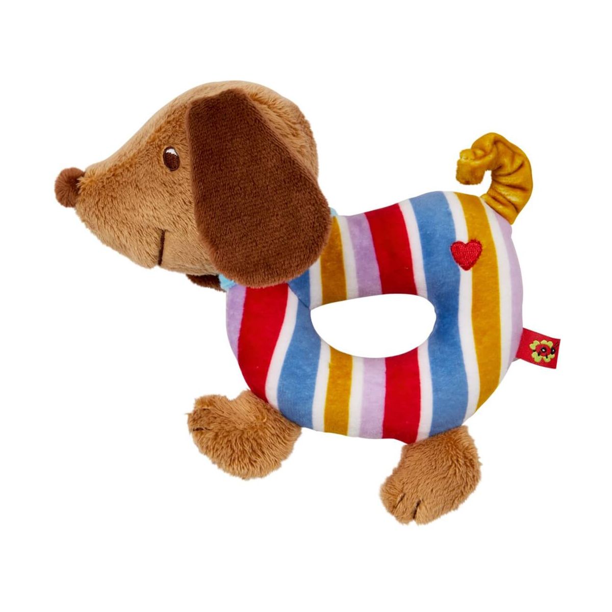 Liebevoll. Das besondere Etwas. Trendiges Design. Hochwertige Materialien. Spielsachen, die Kindern Spaß machen. Geschenkideen zu jedem Anlass… all das ist BabyGlück. Die kuschelweiche Ringrassel im trendigen Dackel-Design ist das absolute Must-Have für Spieldecke, Wickeltisch und Kindersitz. Der sanfte Klang der Rassel weckt Babys Neugier und lädt zu ersten Greifversuchen ein. Das besondere Design mit liebevoller Stickerei verzaubert dabei Groß und Klein. Für (werdende) Eltern, Großeltern und Freunde, die auf der Suche nach einer langlebigen Geschenkidee sind, ist BabyGlück die perfekte Wahl. Ob zur Geburt, zur Taufe oder zum ersten Geburtstag, die Spiegelburg-Kollektion „BabyGlück bietet für jeden Anlass das richtige Geschenk..