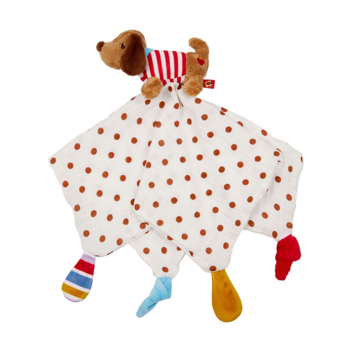 Liebevoll. Das besondere Etwas. Trendiges Design. Hochwertige Materialien. Spielsachen, die Kindern Spaß machen. Geschenkideen zu jedem Anlass… all das ist BabyGlück. Das kunterbunte Schnuffeltuch im Dackel-Design mit integriertem Mulltuch ist ein absolutes Must-Have für kleine Tierfreunde. Dieser kuschelweiche Begleiter bietet Spielspaß, trocknet Tränen oder beruhigt das aufgeregte Baby. Das besondere Extra: Das Schnuffeltuch kann auch als Fingerpuppe bespielt werden - für kreative Interaktion zwischen Groß und Klein. Unterschiedliche Materialien und Applikationen laden dabei ganz nebenbei zum Erkunden und (Be-)Greifen ein. Die besondere Gestaltung mit liebevoller Stickerei verzaubert Alt und Jung und ist ein Hingucker in Kinderwagen oder Kinderzimmer. Für (werdende) Eltern, Großeltern und Freunde, die auf der Suche nach einer langlebigen Geschenkidee sind, ist BabyGlück die perfekte Wahl. Ob zur Geburt, zur Taufe oder zum ersten Geburtstag, die Spiegelburg-Kollektion „BabyGlück bietet für jeden Anlass das richtige Geschenk..
