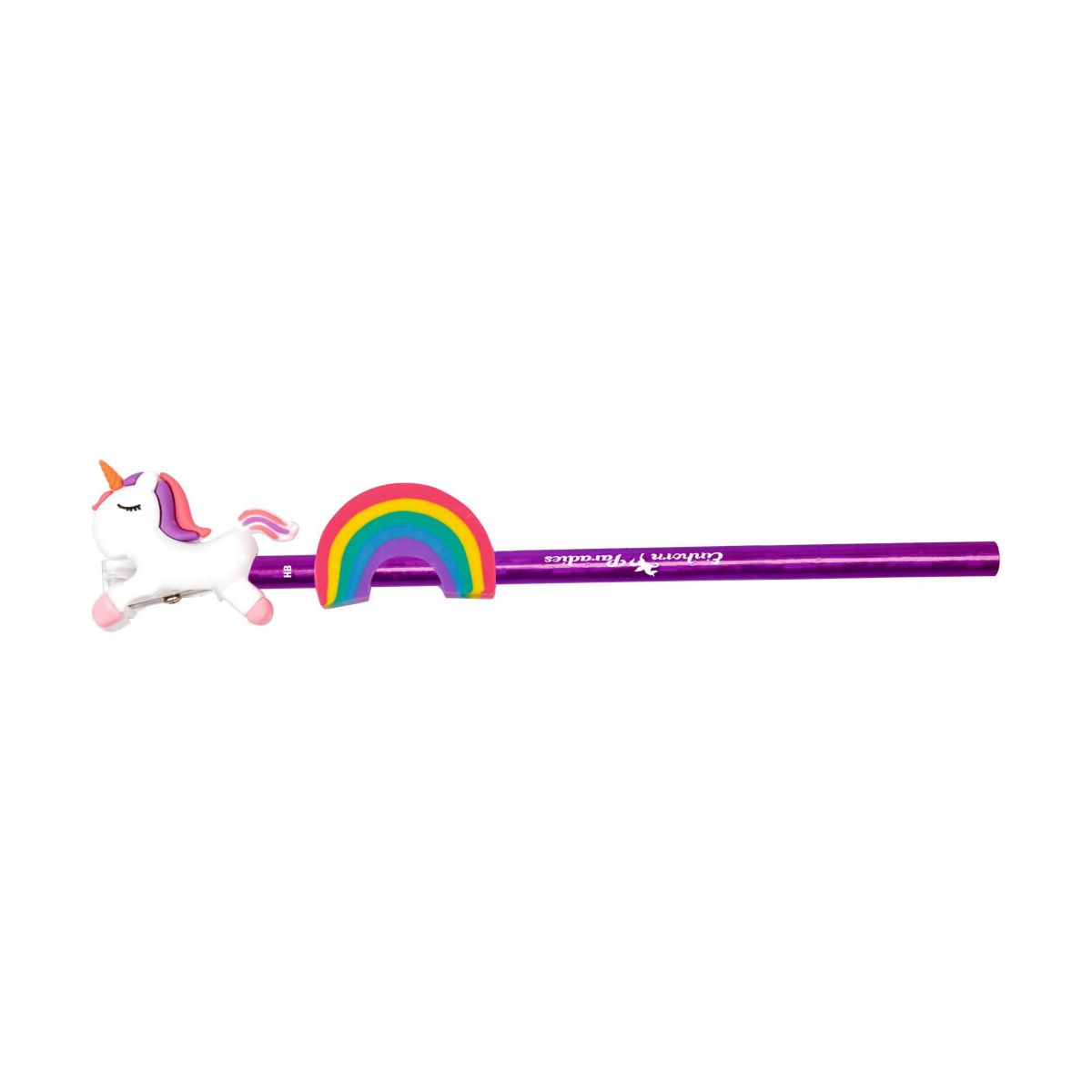 Dieses Schreib-Set verzaubert kleine und große Einhorn-Fans mit der praktischen 3-in1-Funktion: Das Set besteht aus einem HB-Bleistift mit schimmernder Glanzfolie, einem aufsteckbaren Radiergummi in Regenborgen-Form und einem bunten Einhorn-Anspitzer als Topper – ideal für Schularbeiten, Kunstprojekte oder für kleine Kritzeleien. Eine schöne Ergänzung für das Federmäppchen oder den Schreibtisch. Willkommen im Einhorn-Paradies! Erhältlich in zwei verschiedenen Designs. Der Preis gilt pro Set. Leider keine individuelle Farbauswahl möglich..