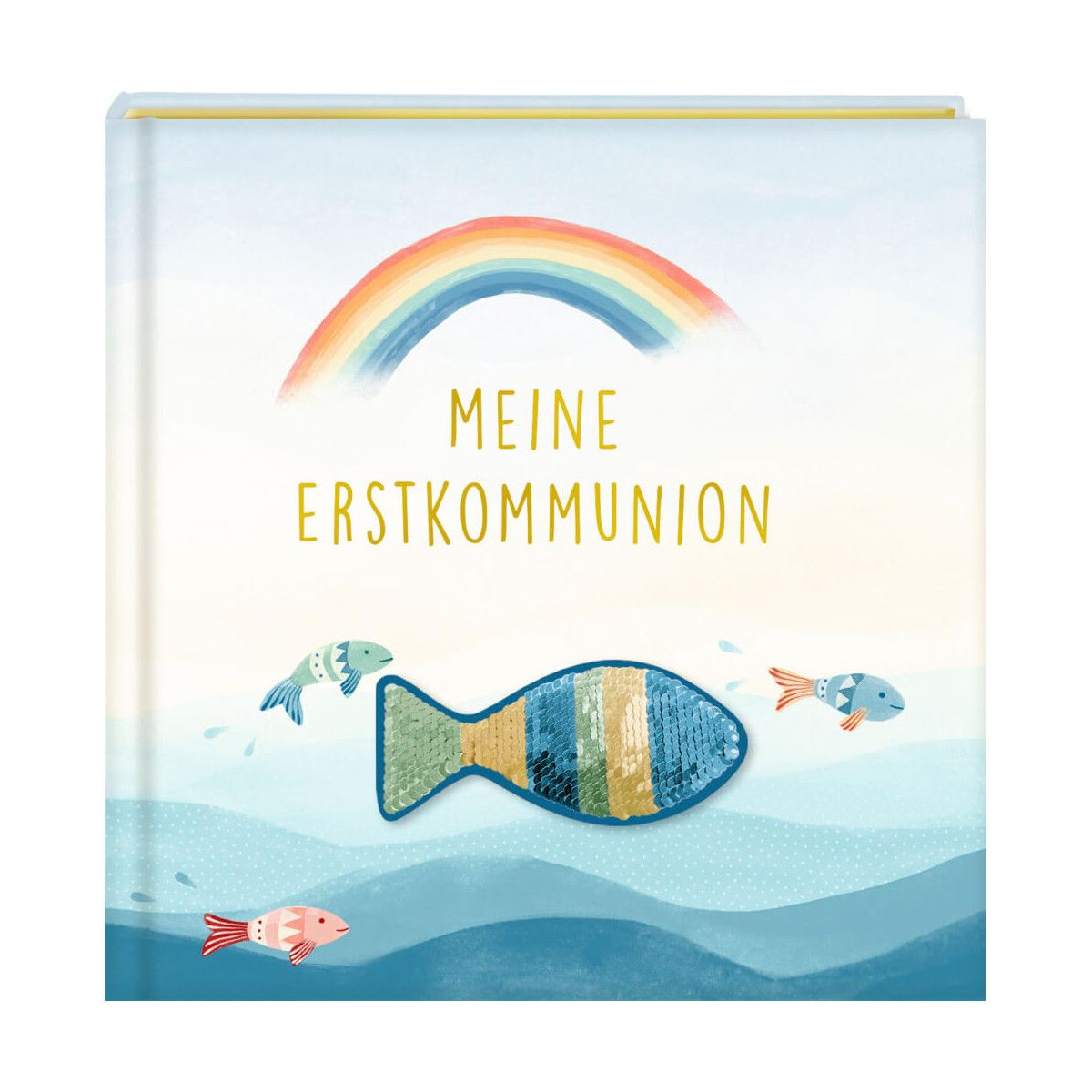 Entdecken Sie dieses zauberhafte Erstkommunionalbum, das als einzigartiges Erinnerungsstück die besonderen Momente dieses wichtigen Tages für immer festhält. Der schimmernde Fisch aus Wendepailletten auf dem hochwertigen Stoffeinband verleiht dem Album eine edle Optik. Auf 48 Seiten bietet das Erstkommunionalbum reichlich Platz, um die schönsten Erinnerungen und herzlichen Glückwünsche festzuhalten. Großzügige Fotoseiten laden dazu ein, die unvergesslichen Augenblicke in Bildern zu bewahren. Machen Sie dieses zauberhafte Erstkommunionalbum zu einem wertvollen Andenken. Ideal als Geschenk zur Erstkommunion, das die Erinnerungen an diesen besonderen Tag für immer lebendig hält..