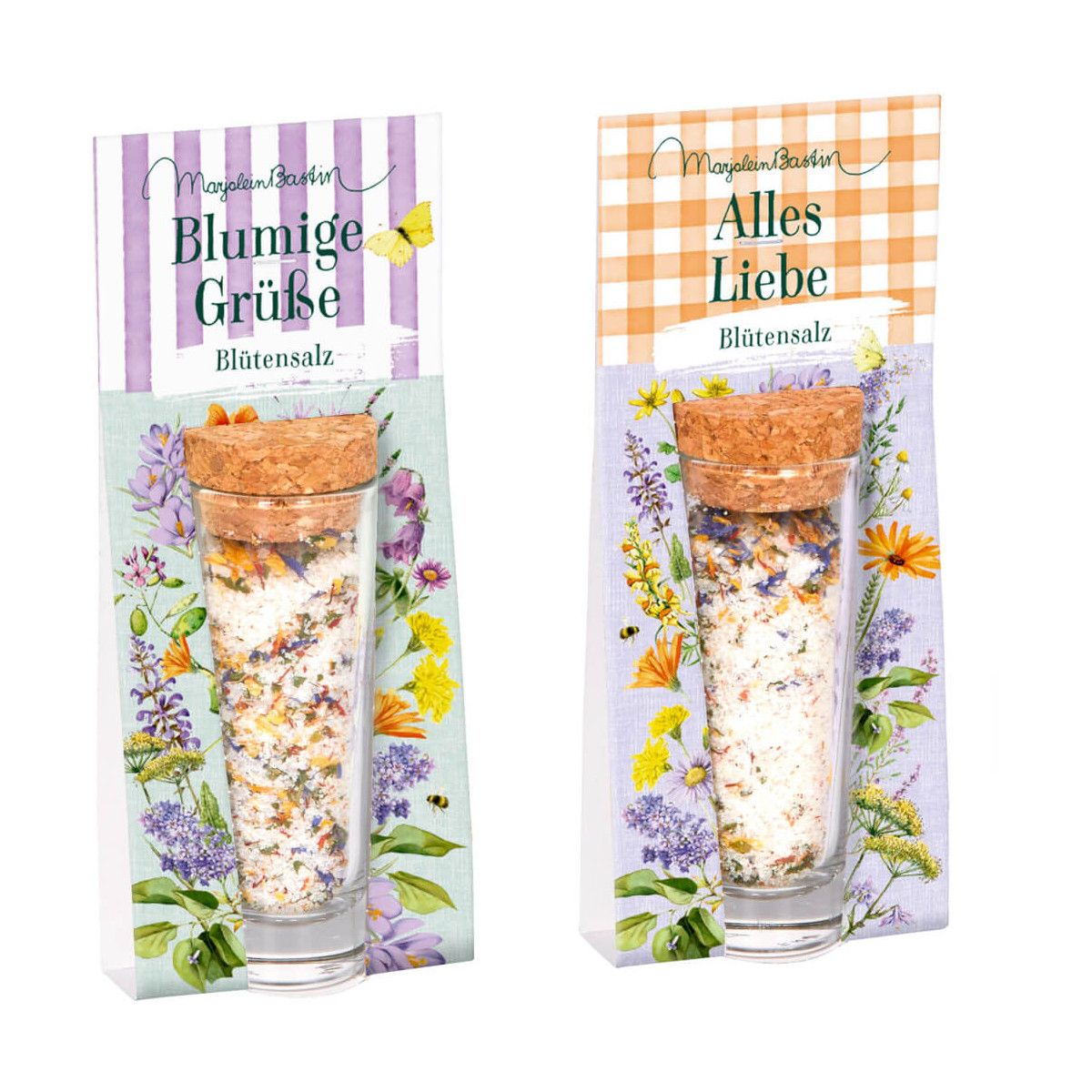 Willkommen in der zauberhaften Welt der GartenLiebe: Das Blütensalz von Die Spiegelburg ist der perfekte Begleiter für Salate, Dressings, Gemüse, Suppen, Gratins, Reis, Nudeln oder Dipsaucen. Der verlockende Duft und der köstlichen Geschmack verleihen jedem Gericht eine ganz besondere Note.Das florale Verpackungsdesign von Marjolein Bastin mit den liebevollen Botschaften macht das Blütensalz zu einem perfekten Geschenk für alle, die die Liebe zum Detail und die Freude am Genuss teilen. In 2 Designs erhältlich, von Hand verpackt in Österreich.Der Preis gilt pro Stück. Leider keine individuelle Motivauswahl möglich..