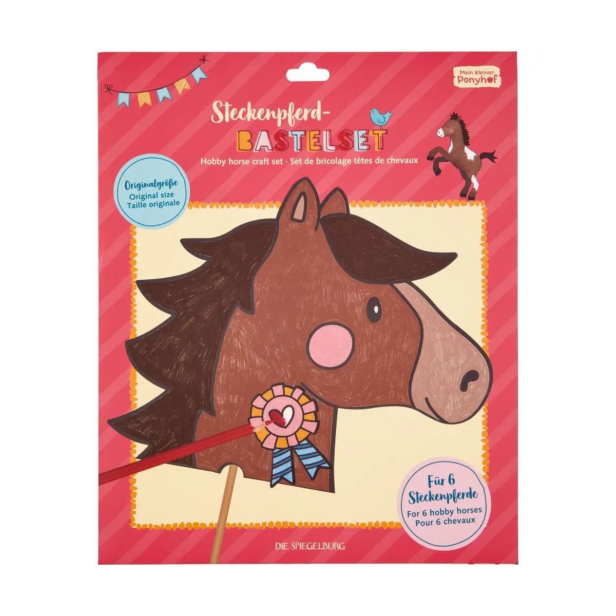 Mein kleiner Ponyhof: Das Steckenpferd-Bastelset von Die Spiegelburg ist das ideale Kreativset für kleine Pferdefreunde. Das umfangreiche DIY-Set enthält alles, was Kinder brauchen, um sechs eigene Steckenpferde zu gestalten. Im Set befinden sich sechs vorgestanzte Pferde, sechs farbenfrohe Kokarden, sechs stabile Holzstäbe sowie 60 transparente Klebepunkte – so kann es direkt losgehen! Die Ponys lassen sich individuell ausmalen und gestalten, eine zauberhafte Beschäftigungsidee für Zuhause oder den nächsten Kindergeburtstag. Mit einer Verpackungsgröße von etwa 31 x 38 cm ist das Set handlich und lässt sich problemlos verstauen. Ein schönes Geschenk für kreative Pferdefreunde..
