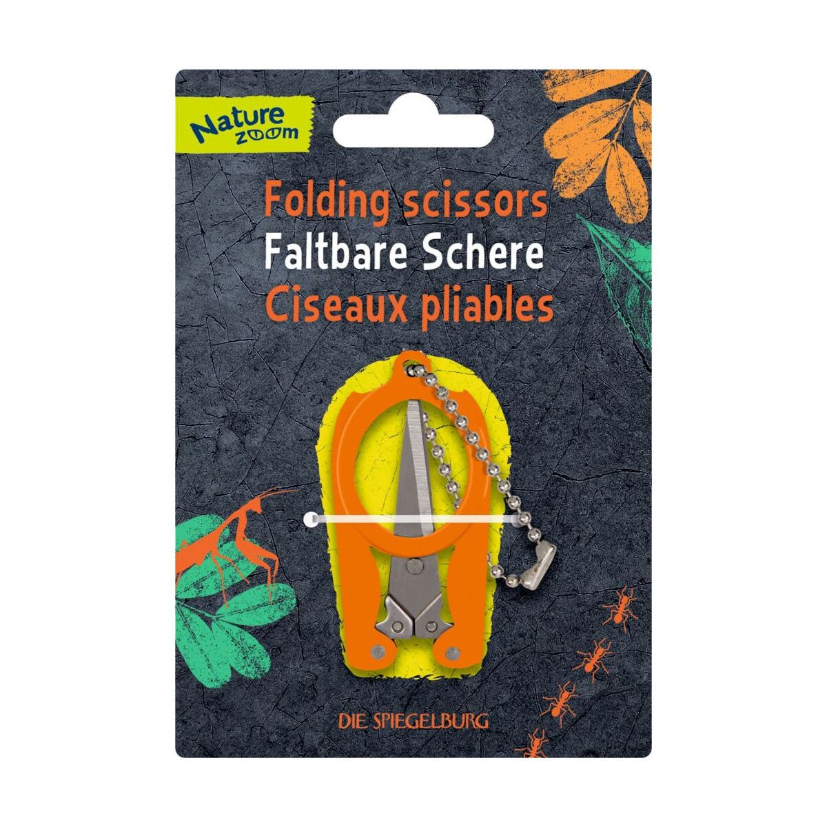 Diese faltbare Schere von Die Spiegelburg ist der ideale Begleiter beim Camping, auf Reisen oder einfach für das nächste Outdoor-Abenteuer.Hergestellt aus rostfreiem Stahl, garantiert die kompakte Schere von Nature Zoom eine langanhaltende Schärfe und hohe Widerstandsfähigkeit. Der Griff aus Carbonstahl ist besonders stabil, während sich die Schere dank integrierter Kugelkette bequem am Schlüsselbund befestigen lässt. Das durchdachte Design ermöglicht eine einfache Handhabung und sicheren Transport. So ist die Schere sicher verstaut und stets einsatzbereit - ein ideales Accessoire für unterwegs..