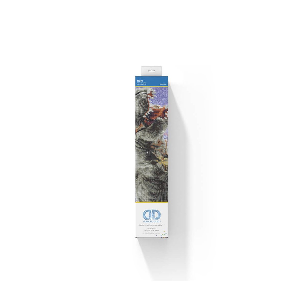 Hochwertiges Diamond Painting Set Dinosaurier ''Rexi'' - DIAMOND DOTZ® Classics: Bring deine Welt zum Funkeln! Das beeindruckende Motiv ''Rexi (52 x 38 cm) kommt mit 14.283 Steinen (93,9 g) in 21 verschiedenen Farben und ist ideal geeignet für Fortgeschrittene und Profis. Jedes Produkt wird geliefert mit hochwertigem bedrucktem Stoff, allen nötigen Steinen (und sogar noch 10% mehr), einem Stift, einer Schale, ausreichend Wachs und der Anleitung. Nur beim Original erhältst du ein unglaubliches Strahlen und Funkeln! Die Premium DIAMOND DOTZ®-Steine mit 13 Facetten reflektieren das Licht noch intensiver und strahlender als alle vergleichbaren Steine auf dem Markt. Wir kennen sie alle, die Sucht nach den kleinen funkelnden - wie Diamanten geschliffenen - Kunststoff-Steinen.. Kaum ist ein Meisterwerk begonnen, schon hängt es an der Wand! Mit dem großen Sortiment von DIAMOND DOTZ® bieten wir dir eine riesige Auswahl an großartigen Gemälden von Stillleben, über Tierwelten bis hin zu bekannten Werken von Vincent van Gogh und weiteren Künstlern. Unterschiedliche Größen, unterschiedliche Schwierigkeitsgrade, unterschiedliche Steine. Auch für Kinder sind zahlreiche Motive auf Bildern, Stickern und Armbändern erhältlich. Weitere Produkte im Sortiment sind auch die DIAMOND DOTZ® Squares sowie die DIAMOND DOTZ® Boxen. Die DIAMOND DOTZ® Squares sind quadratische Steinchen mit 9 Facetten bei einer Größe von 2,6 mm und bringen NOCH mehr Funkeln und Strahlen in dein Wohnzimmer! Die Squares-Motive sind ideal für Fortgeschrittene. Die DOTZ® Boxen hingegen – perfekt für Kinder - bieten das einzigartige Feature, dass das Bild aus der Folie heraus direkt an die Wand gehängt werden kann. Kein extra Rahmen nötig! Die witzigen kindgerechten Designs bereiten viel Freude beim Auftragen der Diamanten-ähnlichen Steine..