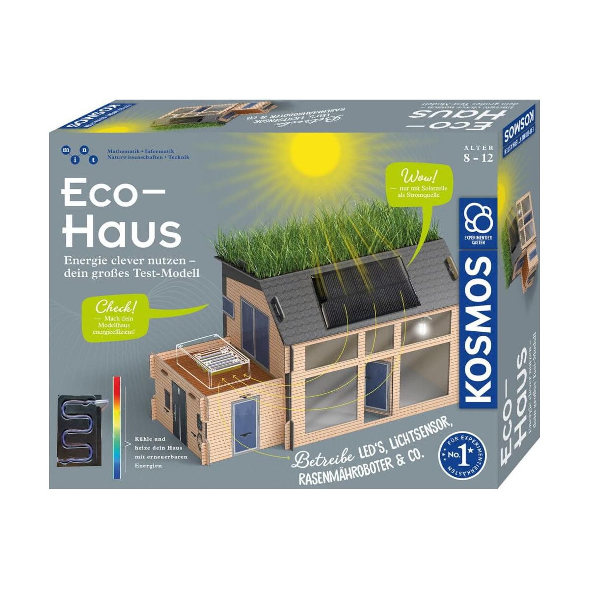 Wofür lassen sich Solarzellen nutzen? Welchen Einfluss haben die Jahreszeiten auf den Energieverbrauch? Und was bringt ein begrüntes Dach? Antworten auf diese und viele weitere spannende Fragen rund um Technik und nachhaltiges Wohnen geben die zahlreichen Experimente, die sich mit dem innovativen Eco-Haus von KOSMOS umsetzen lassen. Spielend leicht und nah an der Realität lernen Kinder, wie sie ihr eigenes Hausmodell mit regenerativer Energie versorgen können. Einmal aufgebaut und mit Stickern gestaltet, wird das Haus dank der Miniaturausgaben von Solarzelle, Klimaanlage, Beleuchtung & Co. zur interaktiven Spiel- und Experimentierwelt..