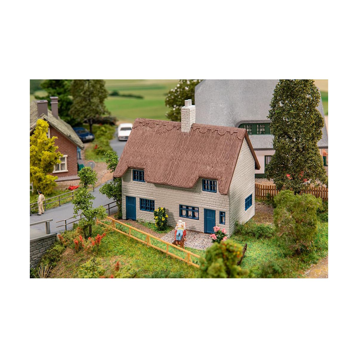 Ein sehr malerischer und leicht zu bauender Modellbausatz eines kleinen Hauses mit Reetdach, wie man es im nördlichen Raum findet. Das Modell benötigt wenig Platz, erzielt jedoch eine hohe Wirkung auf der Modellbahnanlage..