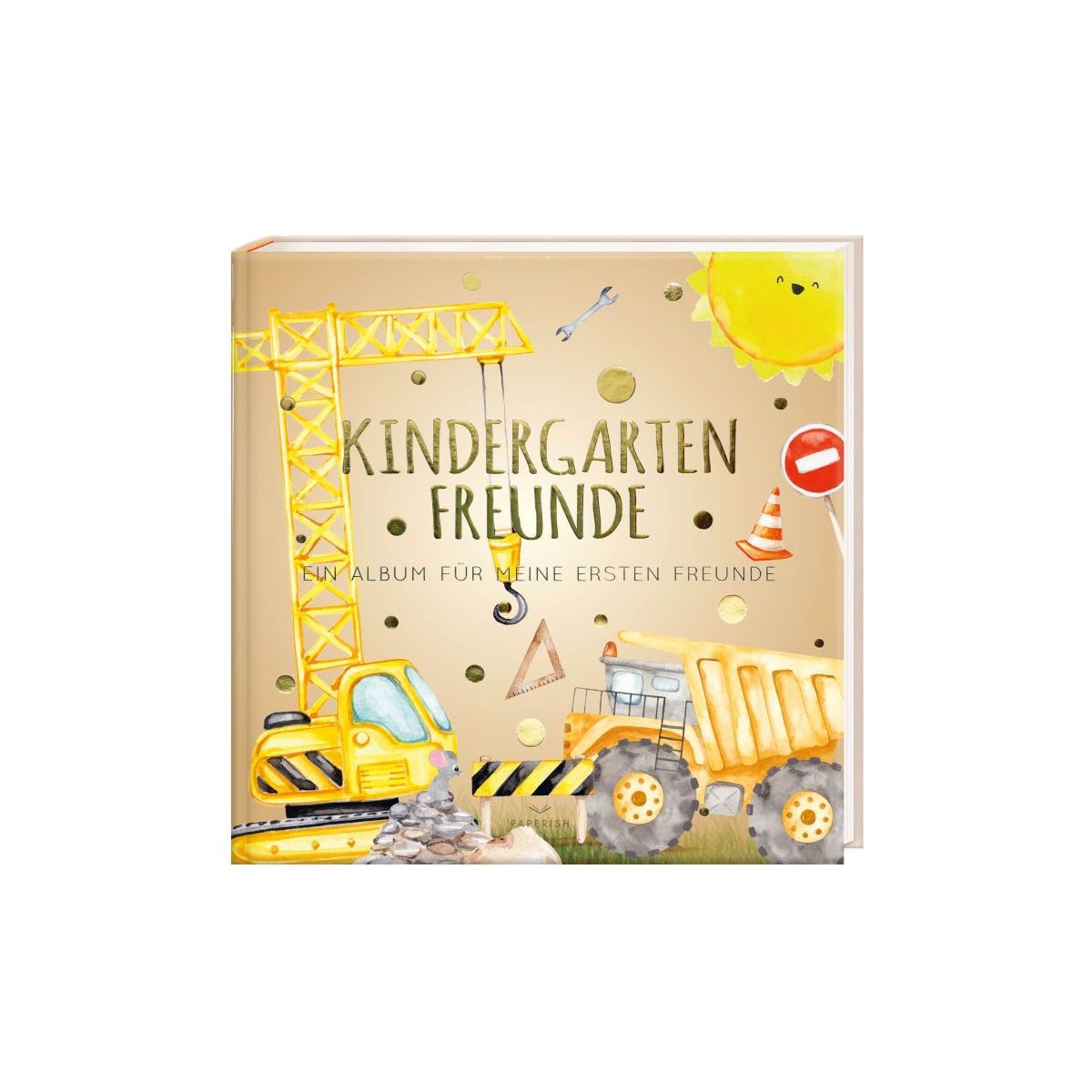 Die perfekte Erinnerung an die ersten Freundschaften und die aufregende Zeit im KindergartenEin ganz besonderes Freundebuch für begeisterte Baustellenfreunde und ihre ersten Begleiter und Begleiterinnen im Kindergarten. Abenteuerliche Tiere führen durch ein wundervolles Freundealbum, in dem jeder auf besondere Weise eingeladen wird, sich zu verewigen – damit die ersten Freundschaften im Leben nicht vergessen werden und später wieder aufleben können. Auf besonders schön gestalteten Seiten kann man reichlich Fragen beantworten, ankreuzen, ausmalen und mitmachen um auf natürliche Weise die soziale Bindung und persönliche Kreativität zu fördern. Damit das Freundschaftsbuch auch lange Freude bereitet, sind die Seiten besonders stabil und der Einband des Buches fest und folienkaschiert. Und für das gewisse Etwas gibt es eine wunderschöne Goldfolienprägung auf dem Cover des Buches, so kann jeder erkennen dass es sich um ein einzigartiges, persönliches Erinnerungsstück handelt. Ein besonderes Geschenk für die Zeit im Kindergarten und die ersten Geburtstage mit Freunden!Eine ganz besonderes, einzigartiges ErinnerungsalbumHöchster Anspruch an Qualität und Herstellung des Buches Hochwertige und liebevolle Gestaltung mit viel Platz für Bilder Texte und ErinnerungenDie wichtigsten Themen rund um den Kindergarten und die ersten Freundschaftenstabiles Hardcoverbuch mit Fadenbindung, Kapitalband und dickem Naturpapiertolle Goldfolienprägung als Highlight auf dem Cover.