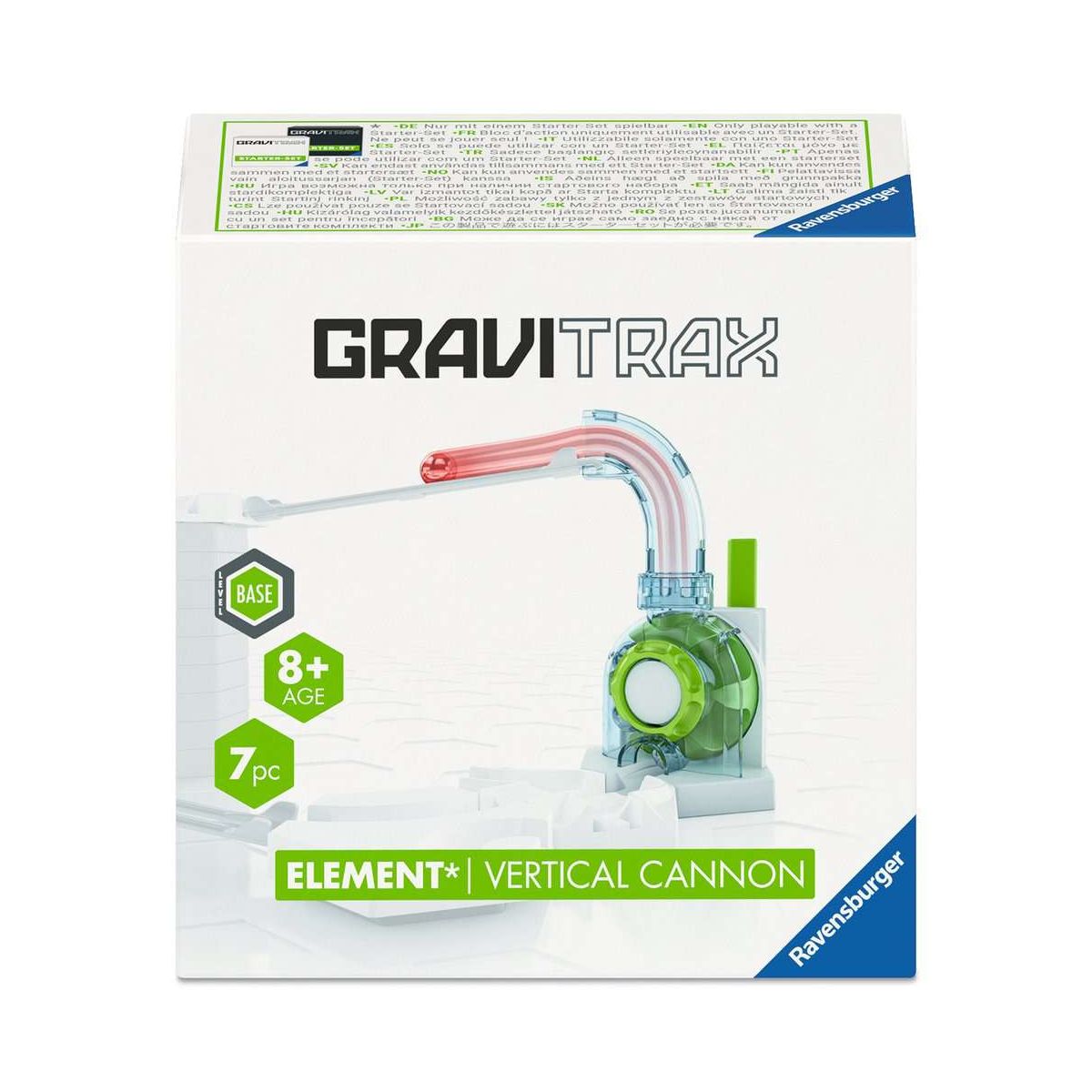 Noch mehr Action mit dem Element Vertical Cannon. Dieses Action-Element ermöglicht es, spektakuläre Höhenunterschiede zu überwinden.Erlebe mit der Vertical Cannon eine neue Dimension der Kugelbahn-Action! Dieses Element überwindet Höhenunterschiede spektakulär. Ein starker Magnet sorgt für eine aufregende Kettenreaktion: Sobald eine Kugel auf der untersten Ebene reinrollt, löst sie eine weitere Kugel aus, die in beeindruckender Höhe weiterrollt.Kombiniert mit einem beliebigen GraviTrax Starter-Set bringt die Vertical Cannon Action in die Bahn und zeigt spielerisch die Gesetze der Physik.GraviTrax ist ein flexibel erweiterbares, interaktives Kugelbahnsystem für Kinder ab 8 Jahren: Mit GraviTrax bauen Kinder, Jugendliche und Erwachsene nicht nur einfache Kugelbahnen. Sie erschaffen einzigartige Kugelbahnwelten. Durch das freie Konzipieren der Kugelbahnen und das Erforschen des Rollverhaltens der Kugeln wird das Verständnis für Wissenschaft geschärft und Schwerkraft hautnah erlebbar. Das GraviTrax Universum beinhaltet drei spannende Linien ? CORE, PRO und POWER. Alle GraviTrax Linien und Produkte können frei miteinander kombiniert werden. Durch unzählige Erweiterungen mit klassischen Bauelementen oder Steine, die besondere Action und Tricks ermöglichen, lässt sich das GraviTrax-Universum unendlich vergrößern. So kann jeder individuell tüfteln, ausprobieren und über sich hinausbauen..