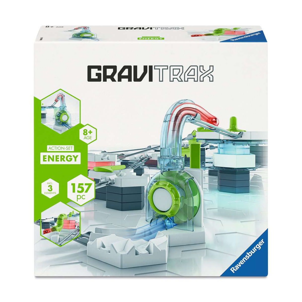 Mit dem GraviTrax Action-Set Energy bekommen Kugelbahnen den nötigen Schwung und Energie, um Kugeln dynamisch nach oben und unten rollen zu lassen!Mit den abwechslungsreichen GraviTrax Elementen des Action-Sets Energy können Kugeln in der Bahn verschiedene Ebenen durchlaufen und immer wieder neuen Schwung bekommen. Nutze das Element Light aus der POWER-Linie, um in die Höhe zu bauen und gib deinen Kugeln mit der Vertical Cannon neue Energie. Der Kreativität und dem Spaß keine Grenzen gesetzt sind - für Konstrukteure, die sich ein trickreiches Kugelbahn-Erlebnis voller Variationen wünschen!GraviTrax ist ein flexibel erweiterbares, interaktives Kugelbahnsystem für Kinder ab 8 Jahren: Mit GraviTrax bauen Kinder, Jugendliche und Erwachsene nicht nur einfache Kugelbahnen. Sie erschaffen einzigartige Kugelbahnwelten. Durch das freie Konzipieren der Kugelbahnen und das Erforschen des Rollverhaltens der Kugeln wird das Verständnis für Wissenschaft geschärft und Schwerkraft hautnah erlebbar. Das GraviTrax Universum beinhaltet drei spannende Linien ? CORE, PRO und POWER. Alle GraviTrax Linien und Produkte können frei miteinander kombiniert werden. Durch unzählige Erweiterungen mit klassischen Bauelementen oder Steine, die besondere Action und Tricks ermöglichen, lässt sich das GraviTrax-Universum unendlich vergrößern. So kann jeder individuell tüfteln, ausprobieren und über sich hinausbauen..