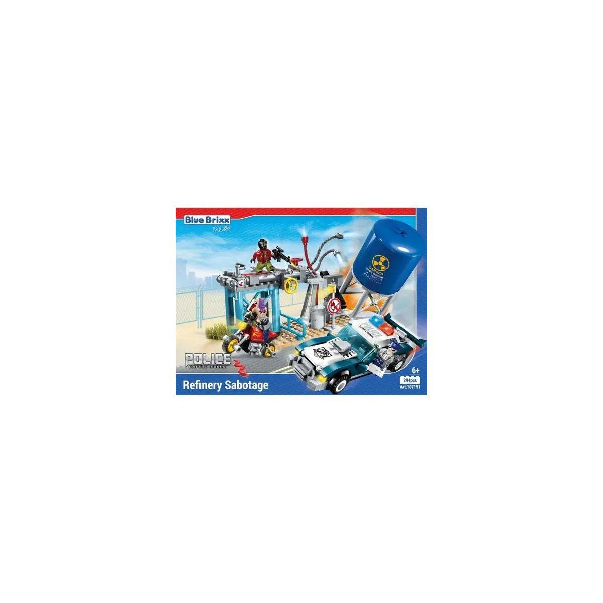 Bei diesem BlueBrixx Pro Set handelt es sich um eine Stadtpolizei: Sabotage an der Raffinerie Die Polizei ist dein Freund und Helfer. Sie versucht, die Sabotage ander Raffinerie durch die Schurken zu verhindern und wieder Ordnung herzustellen. Doch sie braucht dabei deine Hilfe Das Set besteht aus mehr als 294 Steinen und gedruckter Anleitung. Die Bausteine in unseren Sets sind zu100% kompatibel mit anderen Herstellern von Klemmbausteinen.