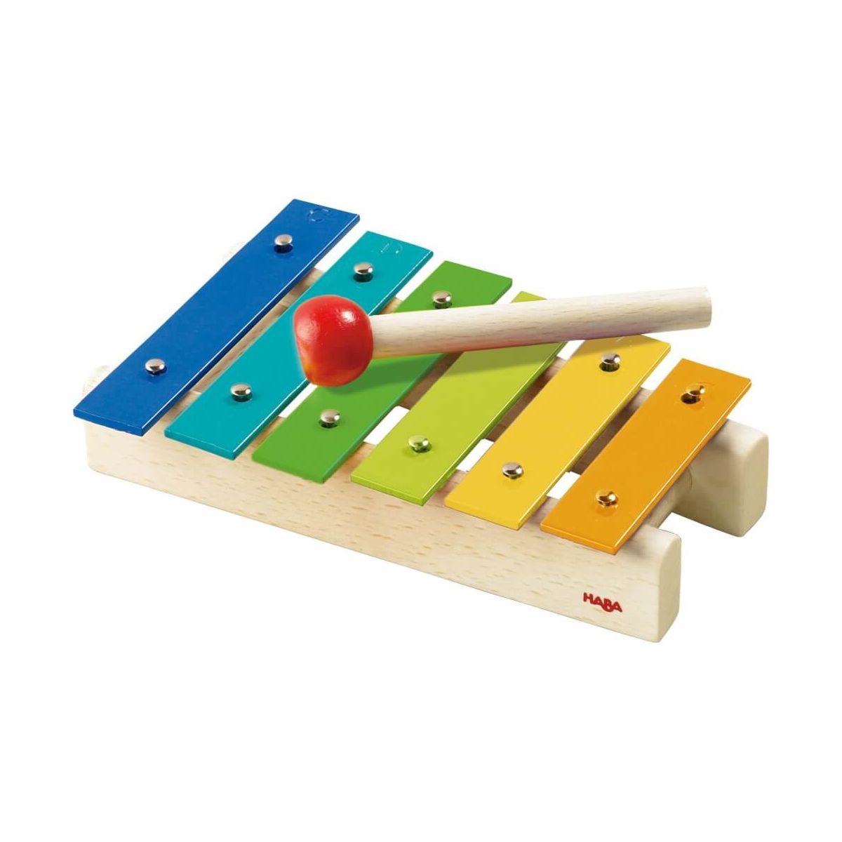 Wer entlockt diesem farbenfrohen Metallophon die schönsten Melodien? Das Kleinkinder-Instrument führt Klangkünstler ab 2 Jahren altersgerecht an die Musik heran. Gemäß der Pentatonik ist das Metallophon für Kinder mit 5 Tönen ausgestattet. Im beiliegenden Liederheft finden kleine Musiker bekannte Kinderlieder und können sie schon bald nachspielen, denn die Töne sind mit den Farben der Klangplättchen notiert. So findet jeder schnell den richtigen Ton. Das Musikinstrument für Kinder fördert das Verständnis für Melodie und Rhythmus sowie Auge-Hand-Koordination. Mit HABA spielend die wunderbare Welt der Musik entdecken..