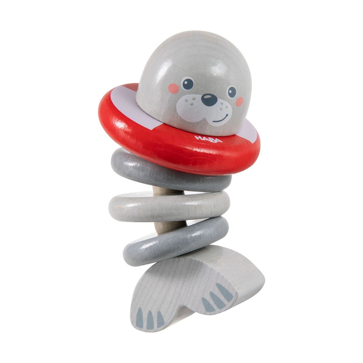 Das niedlichste Lächeln in der Spielkiste hat diese kleine Robbe! Die süße Klapperfigur von HABA fasziniert Babys ab 6 Monaten. Ein reißfestes Gummiband hält die griffigen Holzteile zusammen. Kleine Hände können den runden Kopf und die Flosse prima greifen und festhalten. Beim Schütteln klappern die Ringe aus Buchenholz lustig. Das liebevoll gestaltete Greifspielzeug weckt Babys Neugier im Nu und regt zum Ausprobieren an. Vergnügt greifen die Kleinen nach dem glatten Holzspielzeug mit leuchtend rotem Schwimmreifen und testen, was sich bewegen lässt. Beim Spielen mit der HABA Klapperfigur entwickeln sie ihre Feinmotorik. Das handliche Babyspielzeug passt in jede Tasche und sorgt auch Unterwegs für Abwechslung..