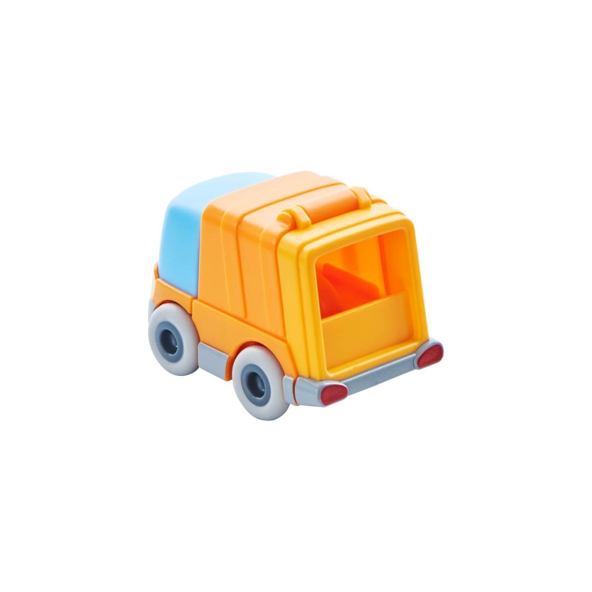 Das Kullerbü ? Müllauto von HABA sorgt immer für Aufsehen, wenn es kommt. Es ist spannend, wenn es, wie die echte Müllabfuhr, von Haus zu Haus fährt, die Heckklappe öffnet und den Müll im Inneren des Autos verschwinden lässt. Dank Schwungmotor geht das ruck, zuck. Einfach kurz anschieben und schon fährt das Auto wie von allein. So hält das Müllauto Kullerbü schön sauber. Auch in anderen Spielwelten regt es zum freien Spielen an. Das Müllauto ist eines von vielen spannenden Fahrzeugen, die noch mehr Spielspaß ins Kullerbü-Spielsystem von HABA bringen und junge Kullerbü-Fans ab 2 Jahren begeistern..
