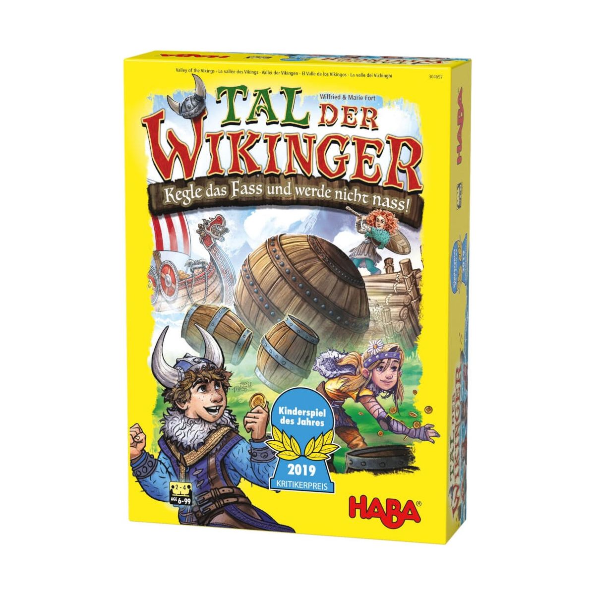 Wenn im Tal der Wikinger das alljährliche Fässerkegeln stattfindet, müssen die Spieler Mut, Geschick und vor allem Risikofreude beweisen, um mit der Kugel die richtigen Fässer umzuwerfen und möglichst viele Goldmünzen zu sammeln. Das spannende Taktik- und Geschicklichkeitsspiel Tal der Wikinger von HABA sorgt mit beeindruckendem XXL-Spielplan, 3D- Wikingerschiffen und 24 Goldmünzen für eine tolle Spielatmosphäre und spannenden Spielspaß bis zur letzten Sekunde. Wer zu viel wagt und ins Wasser plumpst, geht komplett leer aus. Wer es aber schafft, durch geschicktes Kegeln seine Wikinger gut auf dem Steg zu positionieren und die meisten Goldmünzen zu erbeuten, gewinnt das Spiel. Für 2-4 Spieler. Ab 6 Jahren. Spieldauer: ca. 20 Minuten..