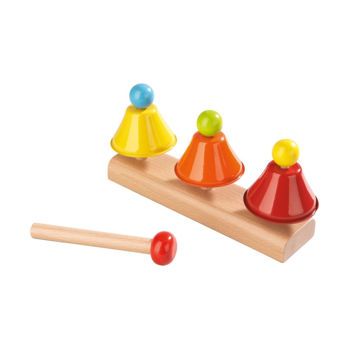 Diese Glöckchen klingen das ganze Jahr über, wenn kleine Musikanten ihre Kreativität erproben. Das Glockenspiel von HABA mit drei zauberhaften Metall-Glocken begleitet Kleinkinder in die Welt der Musik. Die kleinen Glocken sind fest auf dem Träger aus Buche montiert und haben unterschiedliche Größen. Mit dem handlichen Schlägel aus Holz entlocken ihnen die Kleinen schöne Töne. Das lädt zum Improvisieren von Klangfolgen und Melodien ein. Wenn man den Grundträger mit den Fingerspitzen berührt, kann man die Schwingungen der Töne sogar spüren. Mit HABA spielend die wunderbare Welt der Musik entdecken..