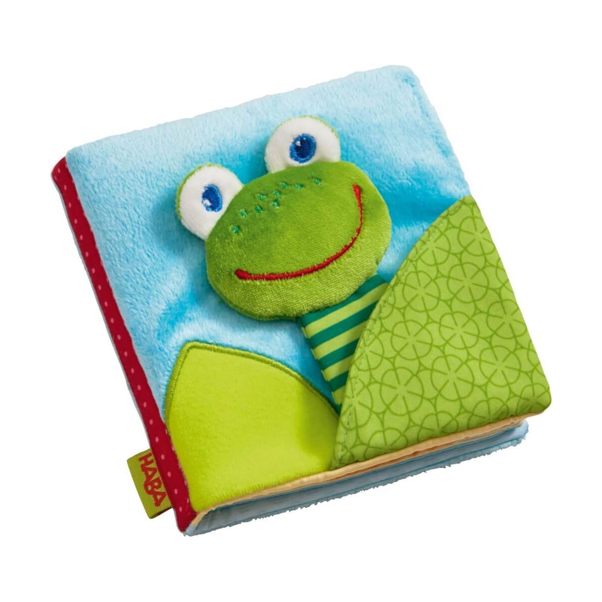 Das Stoffbuch Zauberfrosch von HABA ist der Beginn einer großen Bücherliebe. Hier entdecken Kinder ab 6 Monaten die bunte Welt des kleinen Frosches und viele spannende Spielelemente zum Tasten, Fühlen und Lauschen. Der kleine Froschkopf rasselt, die Einstecktasche knistert und die Buchrückseite ist mit Entdeckerfolie in Wasser-Optik versehen. Ob zuhause oder unterwegs ? mit dem Frosch und seinen Freunden ist immer für Unterhaltung gesorgt. Das Stoffbuch Zauberfrosch aus angenehm weichen Materialien ist ein Babyspielzeug und erstes Bilderbuch von HABA für Babys und Kleinkinder ab 6 Monaten..