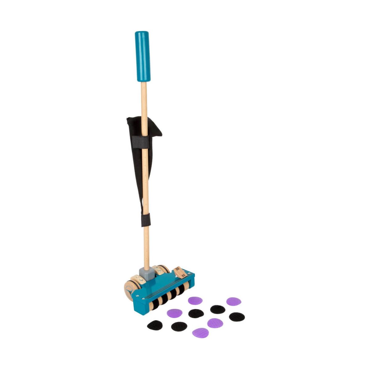 Für kleine Hausmänner und fleißige Putzfeen! Dieser multifunktionale Kinder-Staubsauger aus Holz ist Schiebe- und Rollenspielzeug in einem. Altersübergreifend regt er im aktiven Rollenspiel die kindliche Fantasie an und motiviert als Lauflernhilfe zu ersten Schritten. Für realistisches Spielvergnügen sorgen Flauschstreifen, mit denen der Schmutz in Form von Klettpunkten aufgesaugt wird. Im Auffangbeutel mit Klettverschluss sind die farbigen Klettpunkte sicher verwahrt. Gummierte Räder sorgen für geräuscharmes Rollen und verhindern Wegrutschen. Nach dem Spielen kann das Haushaltsgerät aufrecht stehend verstaut werden. Die farbigen Klettpunkte sind auf verschiedenen Fußböden besonders gut sichtbar. Mit diesem Spielzeug-Staubsauger sind Kinder optimal ausgestattet für den Hausputz!.