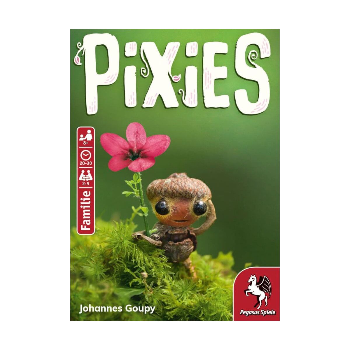 Pixies ist ein Kartenspiel, in dem kleine Waldwesen die Hauptrolle spielen. In jeder Runde wählen die Spielenden reihum eine Karte aus der Tischmitte und legen diese in ihre Auslage. Dabei entscheiden sie, ob sie die Karte als Pixie, also als Waldwesen, ausspielen oder verdeckt als Waldboden. Auch bereits ausliegende Karten können überdeckt werden, dann muss jedoch eine der beiden Karten Waldboden sein oder nun zu diesem werden. Besonders knifflig: Die Zahl, die ein Pixie zeigt, gibt an, an welche Stelle der Auslage es gelegt werden muss. Daher müssen auch die Auslagen der Mitspielenden stets gut im Auge behalten werden, um zum richtigen Zeitpunkt wertvolle Pixies zu ergattern. Es gewinnt, wer die meisten Punkte über Nummern, Symbole und Farbgruppen sammeln konnte.