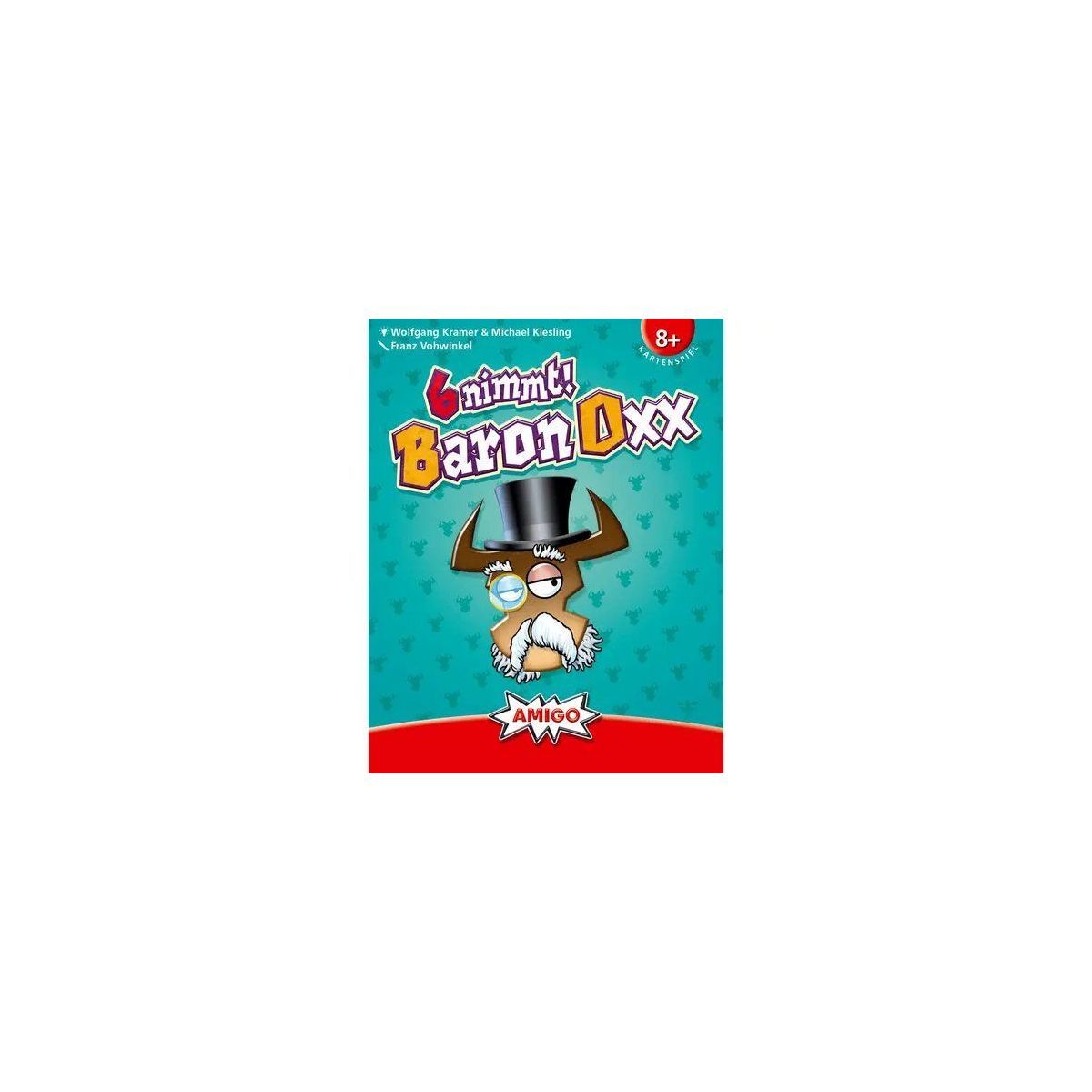 6 nimmt! Baron Oxx MBE3 Das etwas andere 6 nimmt! Farbige Hornochsen statt Zahlen werden in dieser launigen Variante des beliebten Klassikers passend an die Kartenreihen gelegt. Sind sechs Karten oder mindestens sechs Hornochsen einer Farbe in einer Reihe erreicht, kassiert man auch hier fiese Minuspunkte. Der exzentrische Baron Oxx hilft dabei zwar gerne aus der Patsche, lässt sich den Gefallen aber mit Pech durch viele Minuspunkte bezahlen. Eine spaßige 6 nimmt! Variante mit neuen Herausforderungen und Twists. So spielt man 6 nimmt! Baron Oxx MBE3: * Bereitet fünf Kartenreihen auf dem Tisch vor. * Jede Runde legt ihr jeweils eine eurer Handkarten verdeckt vor euch ab und deckt diese dann gleichzeitig auf. * Legt dann die niedrigste Karte zuerst an eine der Reihen an, dann die zweitniedrigste usw. * Jede Karte muss an eine Reihe gelegt werden, deren letzte Karte mindestens einen Hornochsen in einer Farbe zeigt, die auch auf der ausgespielten Karte zu sehen ist. Sind das mehrere Reihen, darf man sich entscheiden, an welche man sie anlegen möchte. * Sobald du die sechste Karte oder den mindestens sechsten Hornochsen einer Farbe in eine Reihe legst, kassierst du diese Reihe. Die Karten geben dir die aufgedruckten Minuspunkte. * Da der Baron jede Farbe einmal zeigt, passt er an jede Reihe. * Das Spiel endet, sobald alle verteilten Karten angelegt wurden. Wer dann die wenigsten Minuspunkte hat, gewinnt. Inhalt: * 110 Spielkarten * 1 Spielanleitung Maße: 12,1 x 9,4 x 1,7 cm Autor: Wolfgang Kramer Grafik: Franz Vohwinkel Erfolgsfaktoren: * Spannende Variante der Topsellers 6 nimmt! * Farbige Hornochsenköpfe statt Zahlen bieten die etwas andere Herausforderung * Von Erfolgsautoren-Team Wolfgang Kramer Michael Kiesling.