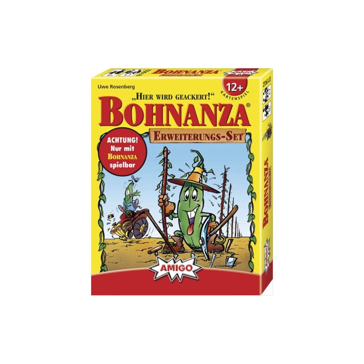 Bohnanza Erweiterungs-Set MBE3 Dank zusätzlichen Bohnensorten in diesem Erweiterungs-Set kann Bohnanza mit bis zu sieben Spielern gespielt werden. Die Ackerbohne schafft neue Bohnenfelder und Auftragskarten erweitern die taktischen Möglichkeiten der Spieler. Wahlweise können eine oder mehrere der drei Varianten dieses Erweiterungs-Sets dem Grundspiel hinzugefügt werden. Achtung: Das ´Bohnanza Erweiterungs-Set´ ist nur mit ´Bohnanza´ spielbar. So spielt man Bohnanza Erweiterungs-Set MBE3: *Das Erweiterungs-Set beinhaltet drei Varianten, die einzeln oder beliebig kombiniert dem Grundspiel hinzugefügt werden können. *Variante 1 ? Drei neue Bohnensorten: Mit Kakao-, Weinbrand- und Kaffeebohnen kann Bohnanza nun mit bis zu sieben Spielern gespielt werden. *Variante 2 ? Die Ackerbohnen: Im Spiel zu viert und fünft können die Ackerbohnen eingesetzt werden. Erntet ein Spieler ein Feld mit zwei Ackerbohnen, bekommt er anstelle von Bohnentalern ein drittes Bohnenfeld. *Variante 3 ? Die Auftragskarten: Um einen Auftrag zu erfüllen, muss der Spieler auf zwei benachbarten Bohnenfeldern die richtige Kombination an Bohnenkarten angebaut haben. Hierbei gibt der Auftrag nicht die Bohnensorten, sondern die Anzahl der Bohnenkarten vor. Jeder erfüllte Auftrag ist am Ende des Spiels einen Bohnentaler wert. Inhalt: * 53 Bohnenkarten * 39 Auftragskarten * 2 Bohnenfeld-Ablagen * 1 Spielanleitung Maße: 12,4 x 9,6 x 2,2 cm Autor: Uwe Rosenberg Grafik: Björn Pertoft Erfolgsfaktoren: * Die Erweiterung für das beliebte Kultspiel * Mehr Spielspaß für 3 bis 7 Spieler * Mit 4 neuen Bohnensorten als Sympathieträger.
