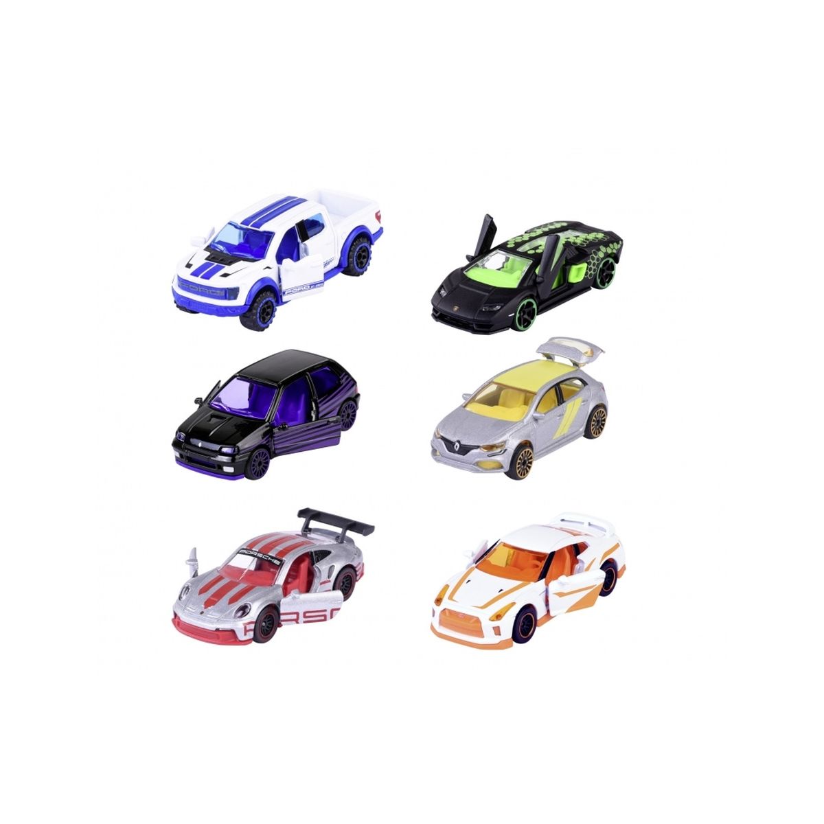 Majorette - Modellauto aus der Limited Edition 10 - 6-fach sortiert (Renault, Porsche, Ford, Nissan, Lamborghini), 1 Auto aus Metall mit Freilauf, 7,5 cm, für Kinder ab 3 Jahre • Majorette Series 10 - In dieser Limited Edition präsentieren sich 6 beliebte Auto-Modelle als besondere Majorette Spielzeugautos, darunter ein Porsche 911 und ein Lamborghini Spielzeugauto. • Zufällige Auswahl aus 6 Autos - Du erhältst 1 von 6 Modellen: 1. Renault Clio 16S, 2. Renault Megane RS, 3. Porsche 911 GT3 Cup, 4. Ford F-150 Raptor, 5. Nissan GT-R, 6. Lamborghini Countach LPI 800-4 • Hochwertiges Metallauto - Die 6 Modellautos sind offiziell lizenziert und werden durch Freilauf und eine Federung zu voll funktionstüchtigen Rennautos, geeignet für Erwachsene und Kinder ab 3 Jahren. • Extras für Fans & Sammler - Erfahre alles über dein neues Lieblings-Fahrzeug: Jedes Spielzeug-Auto kann geöffnet werden und wird zusammen mit einer Sammelkarte zum jeweiligen Modellauto geliefert. • Majorette - Als einer der bekanntesten Hersteller von Modellfahrzeugen kombinieren wir Tradition mit Innovation - seit 1964. Unsere Modelle zeichnen sich durch ihre erstklassige Verarbeitung aus. Originalgetreues Modellauto aus der Majorette Limited Edition 10 Ob der adrenalingeladene Porsche 911 GT3 Cup, der unbezwingbare Ford F-150 Raptor oder der atemberaubende Lamborghini Countach LPI 800-4: Die Majorette Series 10 hat sie alle! Jedes der 6 Spielzeug Autos ist eine detaillierte Nachbildung des echten Automodells – gefertigt aus hochwertigem Metall mit offizieller Lizenz des Autoherstellers!.