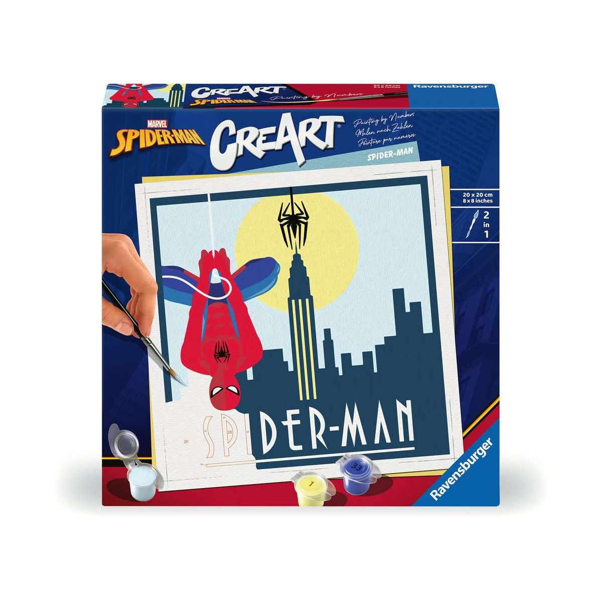 Coole Motive, leuchtende Farben und glänzender Lack für ein perfektes Finish. Das trendige Motiv Spider-Man sorgt für großartigen Malspaß für Erwachsene ab 12 Jahren. Die Motivlinien sind bereits aufgedruckt und nummeriert und werden mit den fertig gemischten Acrylfarben ausgemalt. Das ist Malspaß mit Erfolgsgarantie für einen einzigartigen Wandschmuck. So einfach war malen noch nie!Mit CreArt - Malen nach Zahlen von Ravensburger den Weg zur inneren Ruhe und Entspannung finden. Einfach auspacken und los malen: jedes Malset enthält alles, was zum Malen benötigt wird und es ist kein Mischen der Farben notwendig. Das fertig gemalte Bild eignet sich als trendige Dekoration in jedem Zuhause. Das Ravensburger CreArt - Malen nach Zahlen Programm bietet eine große Motivauswahl für Kinder und Erwachsene..