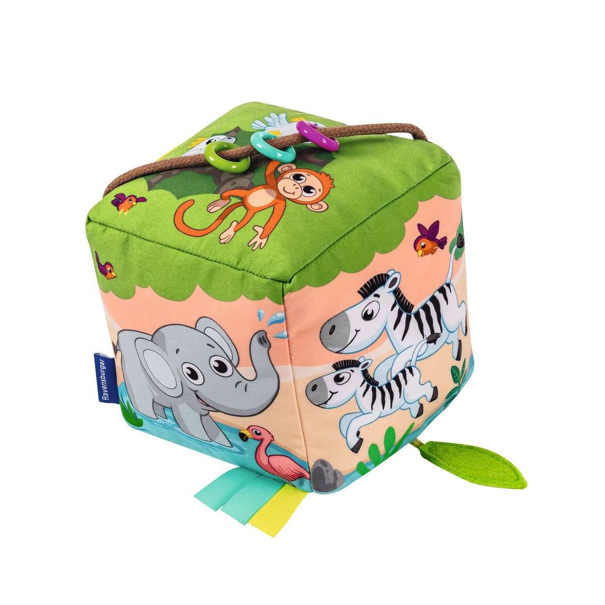 Hören, Greifen, Werfen, Krabbeln ? dieser musikalische Spielwürfel bietet eine Menge Unterhaltung! Dank Bewegungssensor animiert dieser Softwürfel Babys ab 6 Monaten mit über 25 Tierlauten, Geräuschen und Melodien zum Spielen. 3 verschiedene Spielmodi passen sich an die Entwicklung und Bedürfnisse des Kindes an und sorgen für langanhaltenden Spielspaß. Vom Sitzen übers Krabbeln bis zu den ersten Schritten fördert dieser Würfel alle Sinne des Kindes! Nach Entnahme des Soundmoduls auch waschbar.Play+, die neue Baby- und Kleinkindlinie, fokussiert auf eine ganzheitliche frühkindliche Förderung ? mit der gesamten Erfahrung der Marke Ravensburger.Die abwechslungsreichen Bücher und Spielzeuge von Play+ garantieren Kindern von 0-3 Jahren jede Menge Spaß und ermöglichen ein spielerisches Lernen und Entdecken ? egal ob gemeinsam oder auch allein.Die Bedürfnisse der Kinder und die Anforderungen der Eltern bestimmen die Entwicklung aller Produkte. Der Blick fürs Detail, das besondere Extra und eine moderne Gestaltung machen das Programm von Play+ aus, immer unter Einhaltung der hohen Ravensburger Sicherheits- und Qualitätsansprüche. Denn sicher ist sicher..