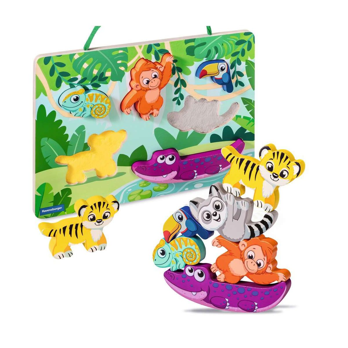 Wo gehört der kleine Affe hin? Wie fühlt sich wohl das Krokodil an? Sechs stabile Holztiere und spannende Fühlteile laden zum Puzzeln ein. Dank ihrer Formen sind sie optimal für kleine Kinderhände geeignet und fördern die Feinmotorik. Und das Beste: die Tiere können auch für ein lustiges Balancierspiel genutzt werden. Dies sorgt für langanhaltenden Spielspaß! Mit praktischem Griff ist das Puzzle ideal zum Mitnehmen. Und dank magnetischer Tiere bleibt alles an seinem Platz, nichts geht verloren!Play+, die neue Baby- und Kleinkindlinie, fokussiert auf eine ganzheitliche frühkindliche Förderung ? mit der gesamten Erfahrung der Marke Ravensburger.Die abwechslungsreichen Bücher und Spielzeuge von Play+ garantieren Kindern von 0-3 Jahren jede Menge Spaß und ermöglichen ein spielerisches Lernen und Entdecken ? egal ob gemeinsam oder auch allein.Die Bedürfnisse der Kinder und die Anforderungen der Eltern bestimmen die Entwicklung aller Produkte. Der Blick fürs Detail, das besondere Extra und eine moderne Gestaltung machen das Programm von Play+ aus, immer unter Einhaltung der hohen Ravensburger Sicherheits- und Qualitätsansprüche. Denn sicher ist sicher..
