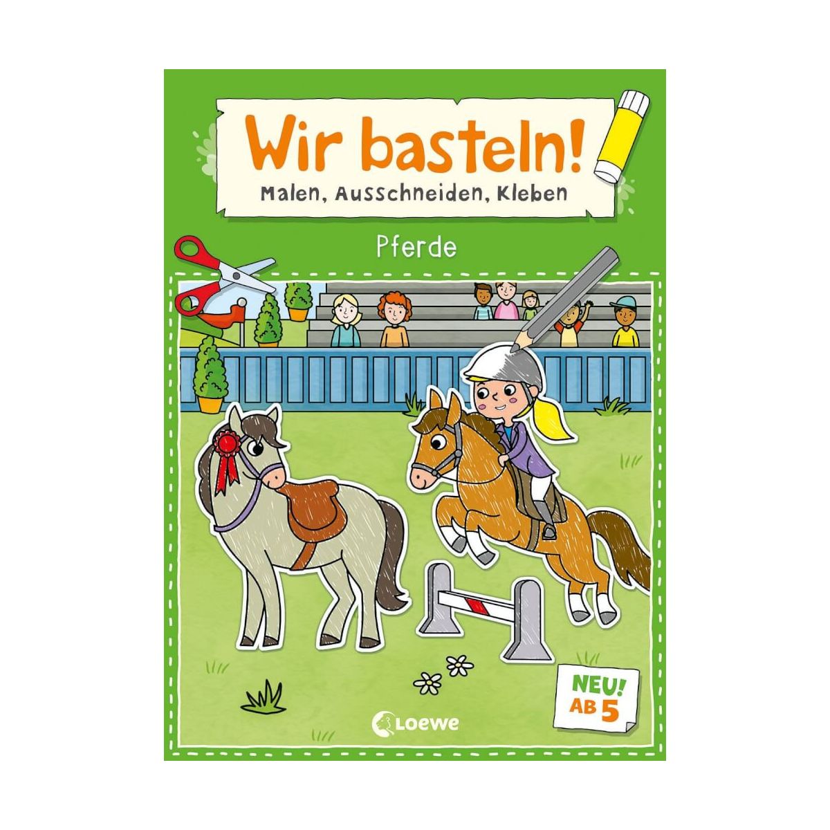 Bastelspaß mit Pferden Male alle Bilder bunt aus. Schneide die Figuren entlang der Linien aus. Klebe sie auf das Hintergrundbild. Gestalt bunte Welten! 8 Szenen zum Ausmalen, Ausschneiden und Einkleben Mit Anleitung und Lösungsseite Für Kinder ab 5 Jahren Dieses Bastelbuch für Kinder ab 5 Jahren lässt die Herzen von Bastelfans höherschlagen. Zuerst werden die Motive bunt ausgemalt, dann entlang der Umrisslinien ausgeschnitten und anschließend in die Szene eingeklebt. Das Buch enthält eine Anleitung und Abbildungen der fertigen Motive. So macht Basteln richtig Spaß und ganz nebenbei werden auch noch Motorik und Kreativität gefördert..
