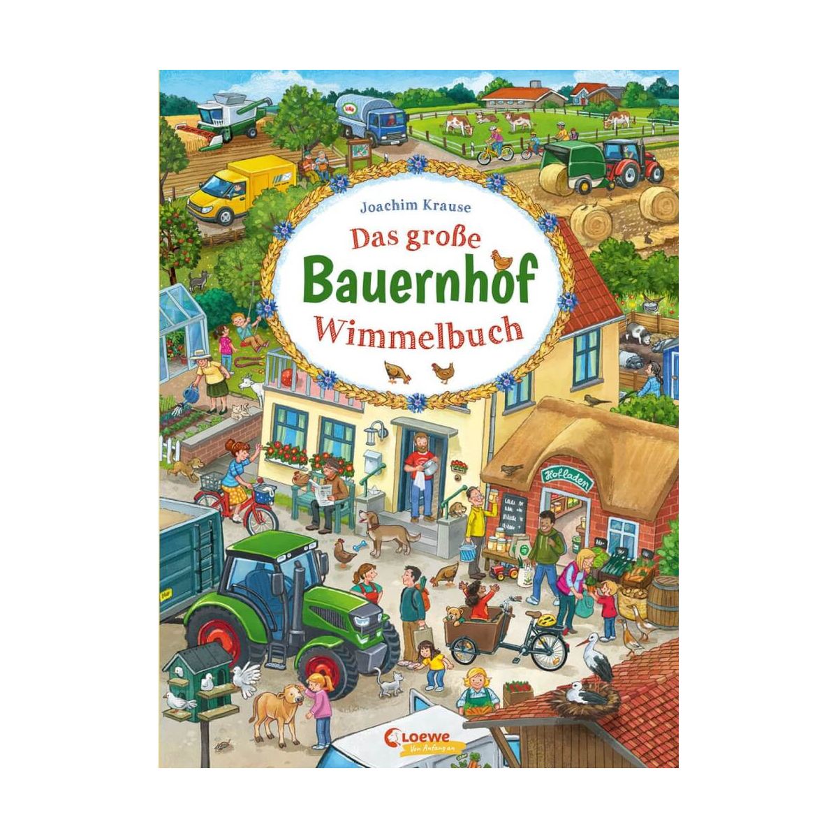 Ein Jahr auf dem Bauernhof! Schon im Frühjahr ist so viel los: die Traktoren werden repariert, Beete und Felder vorbereitet und Vogelhäuschen gebastelt. Im Sommer kann die erste Ernte eingefahren werden und Landmaschinen formen das Stroh zu Ballen, während einige Kinder zu einer Kutschfahrt aufbrechen. Und bald steht auch schon das große Erntefest vor der Tür! Was sich wohl im Winter, auf dem Bauernhof ereignet? Und hast du schon den kleinen roten Traktor gefunden, der sich auf jeder Doppelseite versteckt? Ab 24 Monaten Zwei Topthemen in einem Band: Bauernhof und Jahreszeiten Ein Muss für alle Fahrzeugfans Von Erfolgsillustrator Joachim Krause Unendlich viel zu entdecken! Zahlreiche kleine Geschichten auf jeder Doppelseite Regt die Fantasie an, lädt zum Geschichtenerzählen ein Stärkt die Aufmerksamkeit und fördert die Konzentrationsfähigkeit Ideal zur Selbstbeschäftigung.